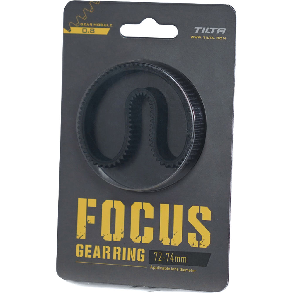 Tilta's 72 to 74mm Seamless Focus Gear Ring allows you to add 0.8 MOD gears to a compatible lens for use with cine follow focuses. This 72 to 74mm size fits virtually all lenses of the same outer diameter. The seamless version is designed with an improvement over Tilta's earlier gear rings in that it's fully closed and requires no screws in order to be secured to the lens. As a result, it attaches to the lens more easily and provides evenly distributed pressure while ensuring zero drifting and accurate focus. It's made of durable, flexible rubber, attaches firmly, and works silent and smooth along 360° of rotation. The MOD rating and 72 to 74mm diameter size are etched out on the inside of the ring.