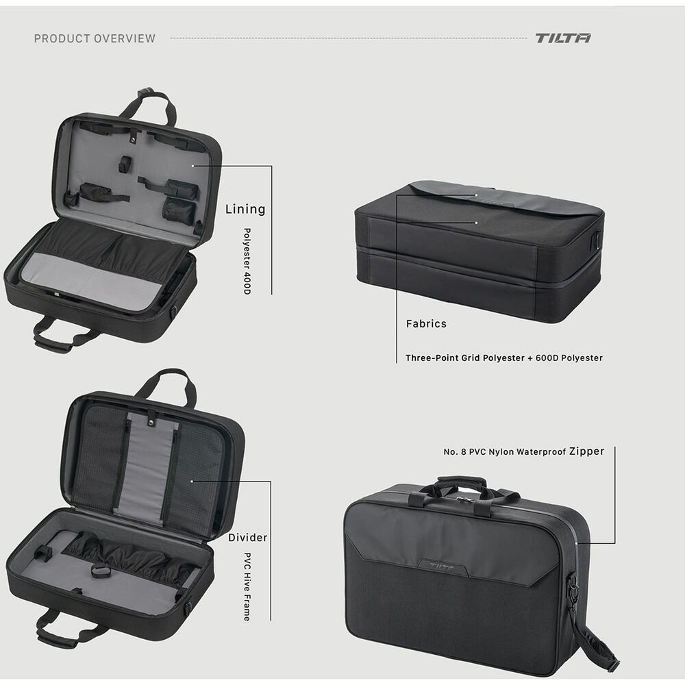 Store and transport your Tilta Basic or Advanced Ring with this Soft-Shell Case for Advanced Ring Grip from Tilta. The waterproof polyester case is also an ideal option for the DJI RS2 Gimbal and other relevant DJI ecosystem accessories while keeping all your gear dry and organized. Sort your equipment, accessories, and cables, using the built-in dividers and secure the case to your luggage with the built-in trolley sleeve.
