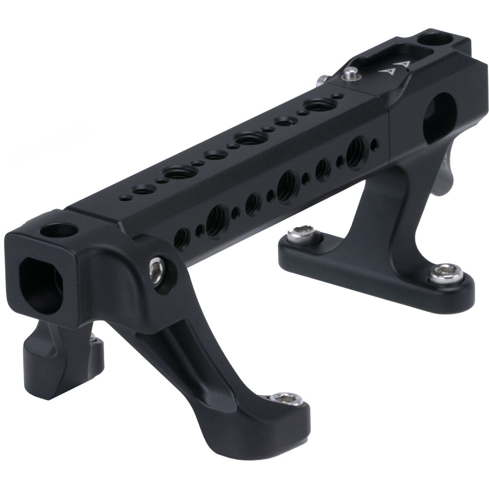 Secure a cheese plate-style handgrip to the top of your RED V-RAPTOR camera cage via four built-in 1/4"-20 screws with the Tilta Top Handle to add more mounting options to your rig. Multiple 1/4"-20 and 3/8"-16 threads on the handle allow you to mount articulating arms and secondary monitors. A single cold shoe mount and 15mm rod compatibility expand these mounting capabilities even more to shotgun microphones and transmitters. The handle is made up of aluminum alloy and steel for a durable and lightweight design.