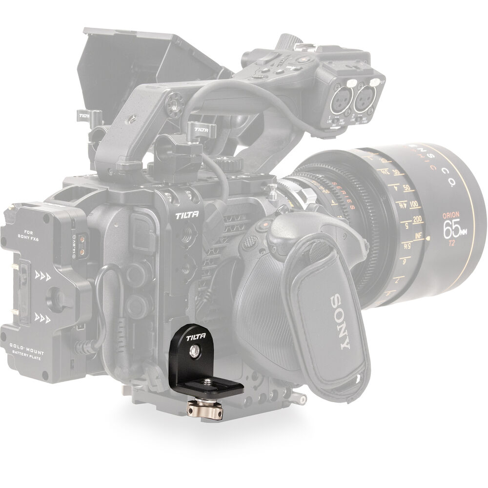 Add this right-angle Tilta Wireless Video Mounting Bracket for Sony FX6 to your FX6 camera cage via a 1/4"-20 connection, for easy mounting and use of your wireless video transmitter. Made from aluminum and steel, this 1/4"-20 mounting system features anti-twist divots to obviate the need to overtighten the screws. The anti-twist pins are removable, which allows you to use this mounting system with virtually any cage and cine accessory where a sturdy right-angle mount would be to your benefit.