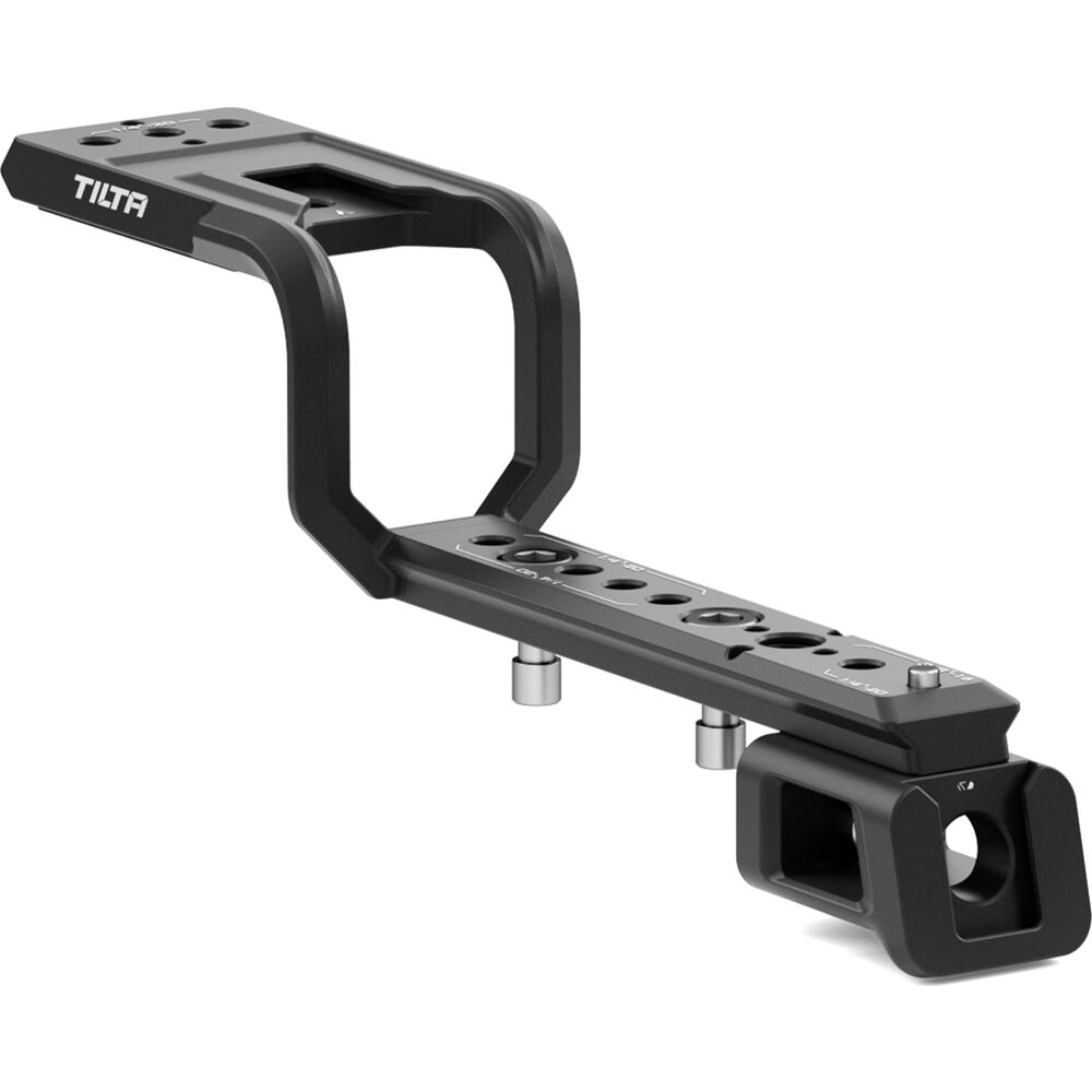 Use your Sony XLR-H1 top handle unit with your FX3 or FX30 without sacrificing mounting space thanks to the black Tilta XLR Extension Bracket. The bracket is designed to perfectly hug the top handle while adding an extension to its length to accommodate camera loads with larger lenses. Multiple 1/4"-20 and 3/8"-16 threads throughout the bracket, two cold shoe mounts, and a NATO rail with a safety pin allow you to attach external monitors, shotgun microphones, or other accessories to your rig. Four built-in screws secure the bracket to your top handle.