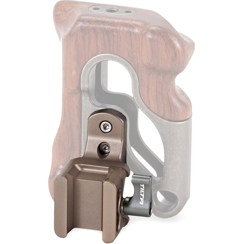 The Advanced Left-Side Handle Adapter Type VI from Tilta enables you to mount a Tiltaing Left-Side Wooden Handle to the NATO rail mount on select Tilting camera cages. This gold Type VI adapter is constructed of aluminum and stainless steel and comes with an Allen key.