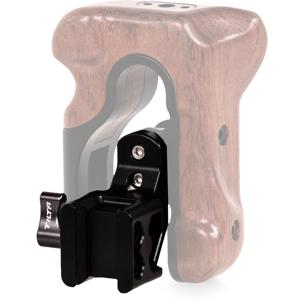 The Advanced Right-Side Handle Adapter Type VI from Tilta enables you to mount a Tiltaing Right-Side Wooden Handle to the NATO rail mount on select Tilting camera cages. This black Type VI adapter is constructed of aluminum and stainless steel and comes with an Allen key.