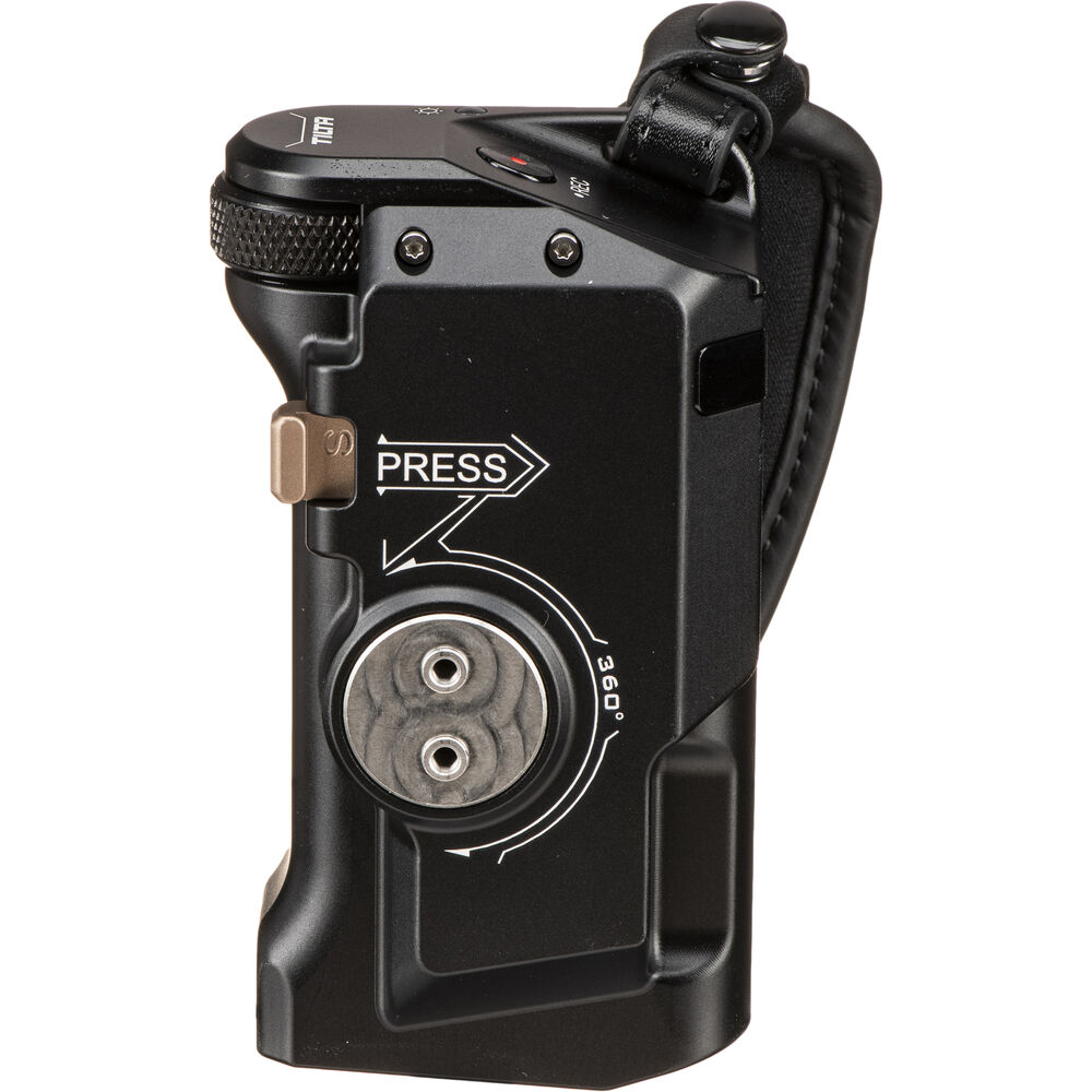 The handle accepts a Sony F570 battery, sold separately. An included USB cable connects the handle to your Nucleus Nano motor to power it off the F570 battery and to allow finger-wheel focus control.