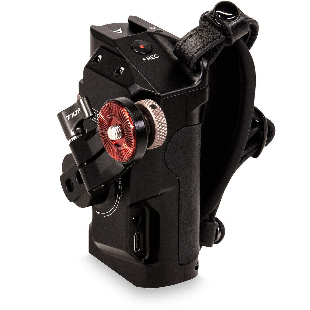 Power a variety of optional accessories and control your camera's start and stop without drawing power from your camera's battery with the Tiltaing Right-Side Advanced Power Handle Type V from Tilta. Designed with a black finish for Tiltaing camera cages, it features a button for triggering recording on/off over an optional Tilta R/S cable connection to compatible cameras. Multiple R/S cables are available, depending on your camera.