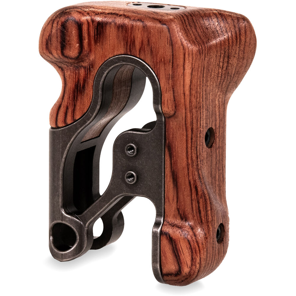 This tactical gray Tiltaing Wooden Handle from Tilta is a contoured handle designed to mount onto the right side of your Tiltaing camera cage. Made with a comfortable wooden grip, this legacy handle requires a separately available adapter to mount onto your cage.