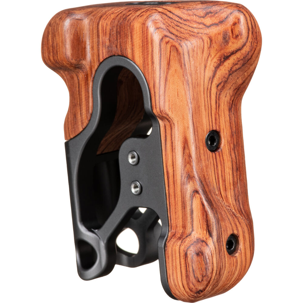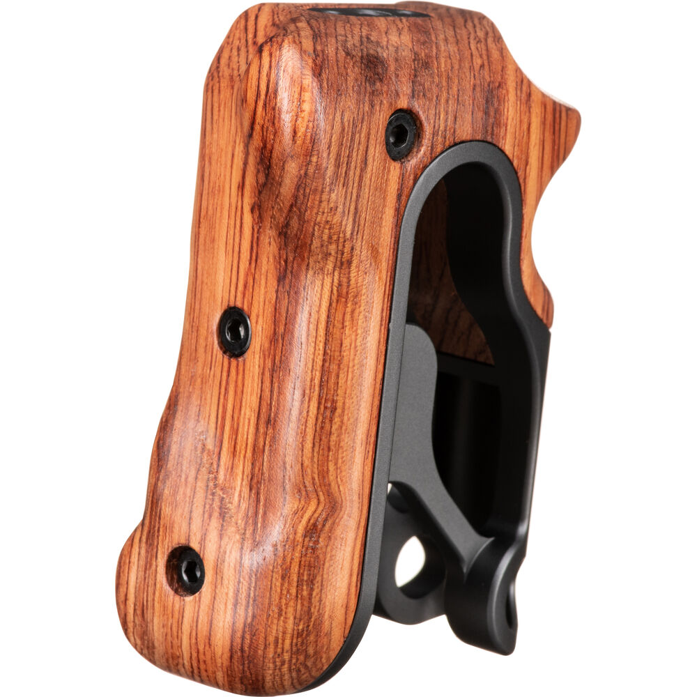 This Tilta gray Tiltaing Wooden Handle from Tilta is a contoured handle designed to mount onto the right side of your Tiltaing camera cage. Made with a comfortable wooden grip, this legacy handle requires a separately available adapter to mount onto your cage.
