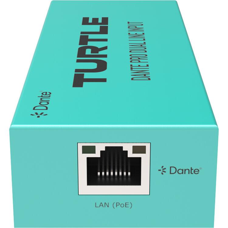 Enable seamless conversion of your two-channel analog audio to 2-channel digital Dante audio with the Pro Dual Channel Dante to Analog Line Adapter from Turtle AV. Sporting PTP technology for jitter-free audio and up to 24-bit / 96 kHz sampling, this professional adapter easily converts analog audio to low-latency, pro-quality digital for Dante systems.
