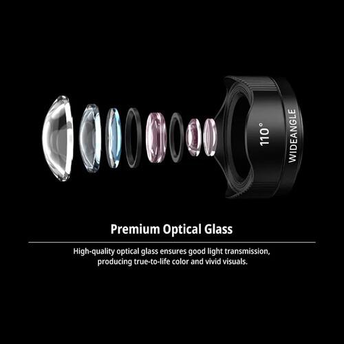 Achieve wide-angle shots with minimal distortion using the 16mm Wide-Angle Lens from Ulanzi. Built using high-quality optical glass, its 6 element, 5 group design delivers a 110° angle of view and a 0.5x magnification, while aluminum alloy construction and anti-slip textures deliver durability and ease of use. Also featured is a minimum focusing distance of 1.2 to 1.6" and included is a lens clip with a cold shoe mount for compatible accessories.