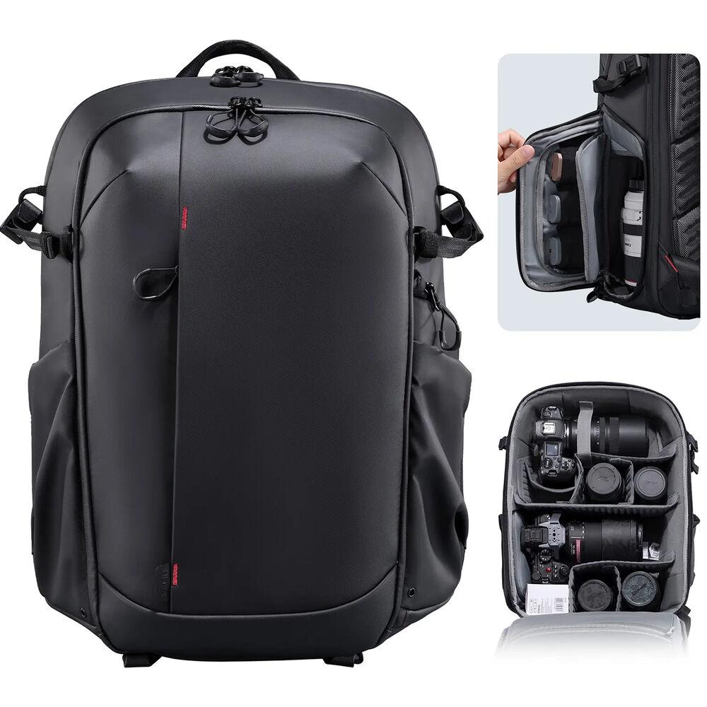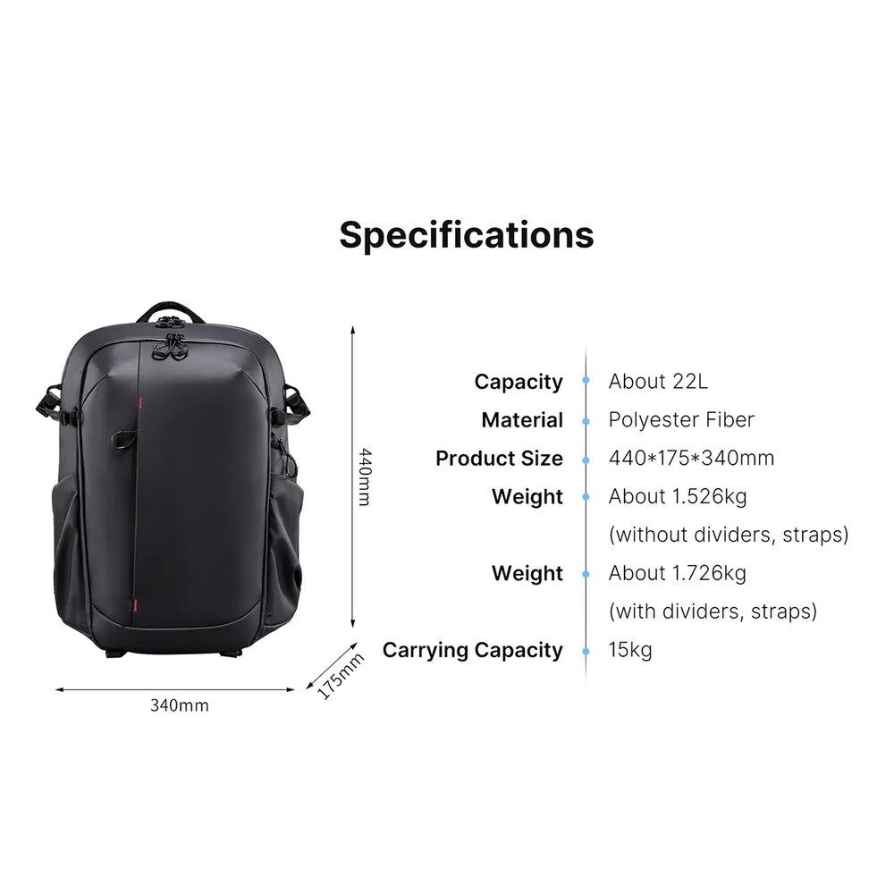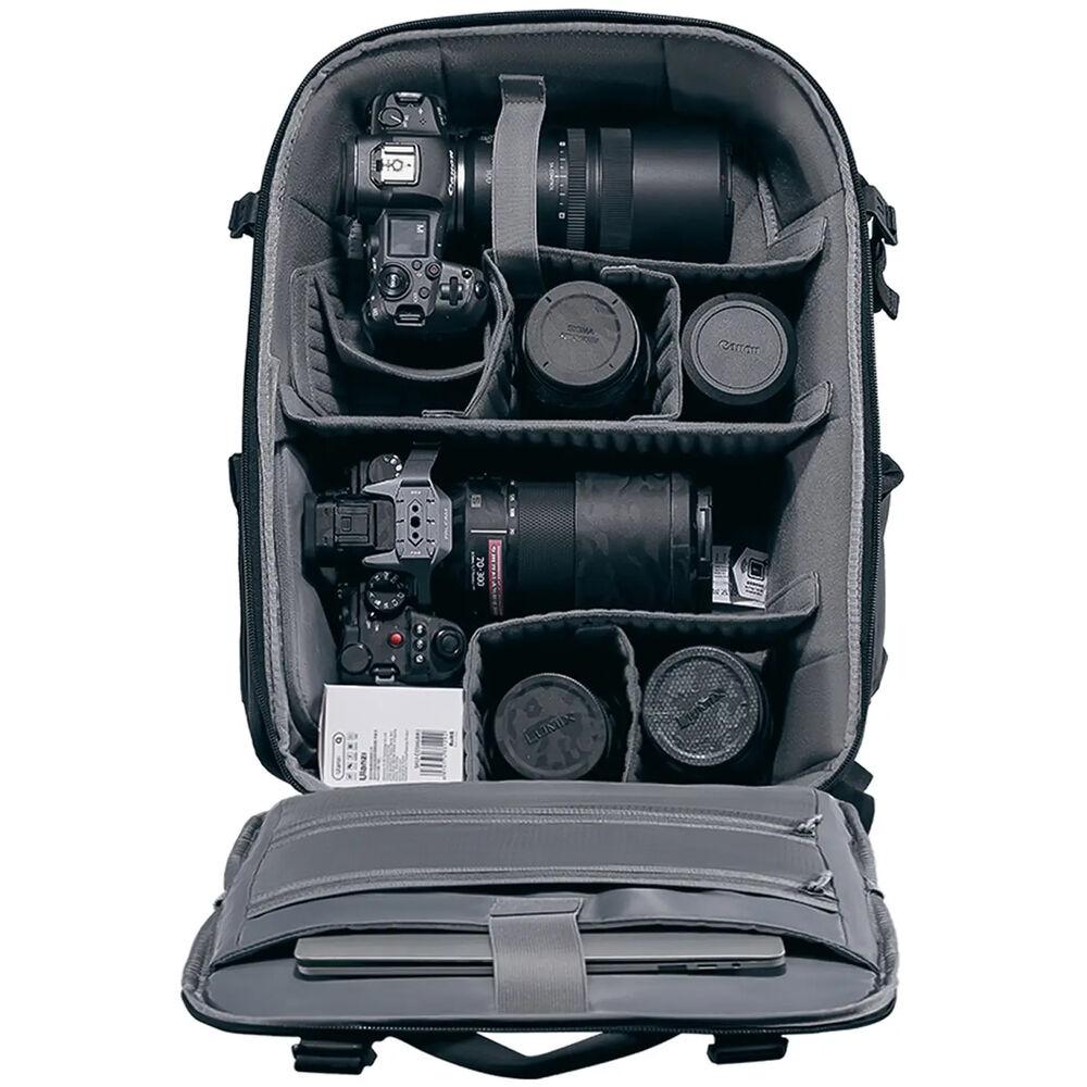 Protect and transport your photo gear in the black, 22L BP09 Camera Backpack from Ulanzi. This spacious pack is designed to comfortably accommodate two cameras and four lenses. Multiple pockets and compartments are ideal for organizing and storing smaller items. There is also a designated pocket for your 16" laptop. The removable insert has seven hook-and-loop dividers of varied sizes with a raised texture to help protect your equipment and absorb shocks. The side zipper lets you quickly access your gear while you're wearing the pack.