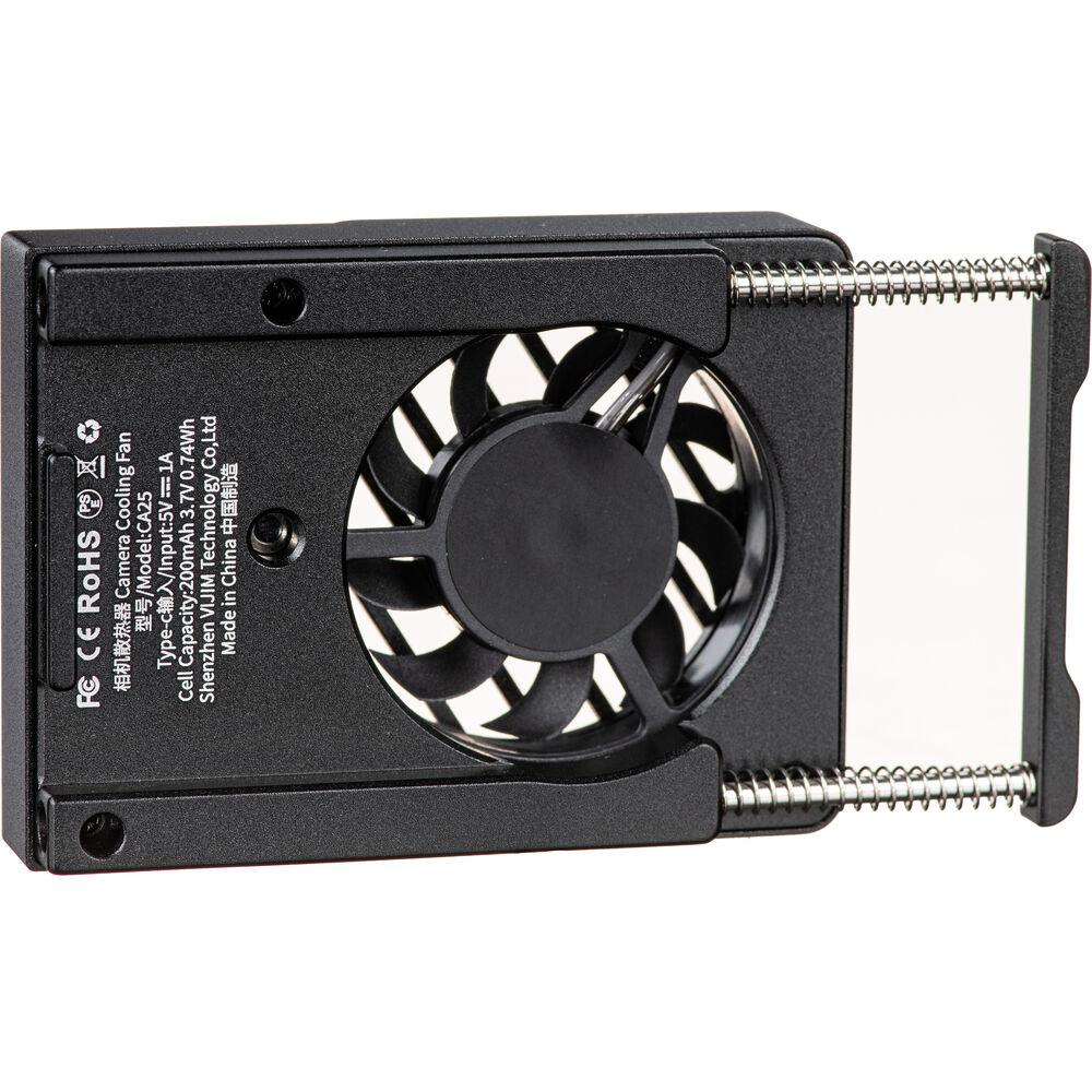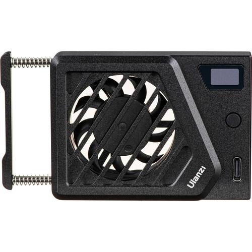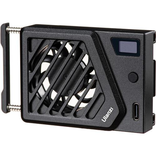 Secure the black Ulanzi Camera Cooling Fan to your compatible DSLR or mirrorless camera for long video shoots to avoid overheating. This aluminum alloy cooling fan can operate at two different speeds. While level one speed provides near-silent operation, level two speed provides higher cooling at the cost of battery life. A USB-C port allows for convenient charging. An OLED display provides real-time fan speed and temperature, which ranges from 73 to 158°F.
