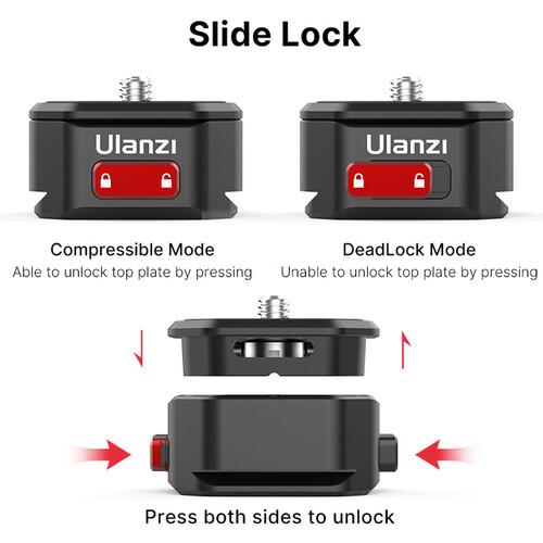 The Claw Quick Release Set (Generation II) from Ulanzi is a compact but versatile quick release plate and receiver set with a load capacity of 110 pounds. The plate features a 1/4"-20 camera mounting screw and a rubberized base for camera traction and to resist marring the camera finish.