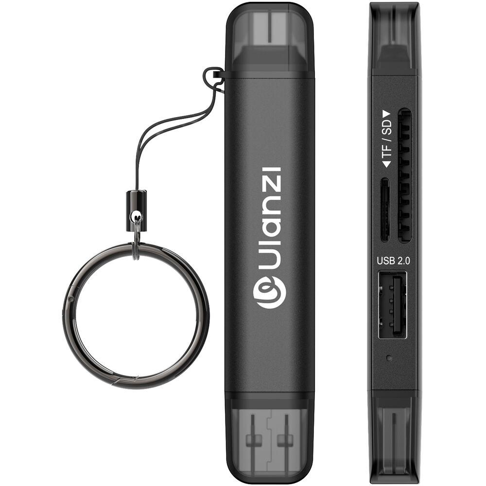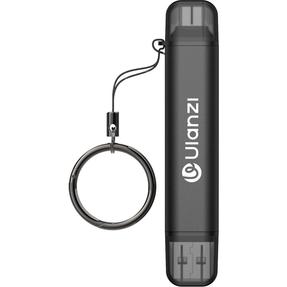 The CR1 3-in-1 Card Reader from Ulanzi lets users transfer data between mobile, desktop, and USB devices. It connects to your host system using either an integrated USB-C 3.2 Gen 1 or USB-A 3.2 Gen 1 male interface, which delivers data transfer speeds up to 170 MB/s. It is equipped with dedicated SDXC and microSDXC card slots, plus a USB-A 2.0 female interface. Also featured is a durable aluminum build, and included is a detachable lanyard and dust caps for each end.