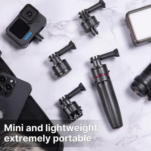 Integrate this Ulanzi Go-Quick II Basic Magnetic Mount Set and its various components to your action camera tripods or mounts for quick release compatibility. Included in the set is a 3-prong camera mount compatible with various action camera models from DJI, Insta360, and GoPro which then inserts into either of the two bases. One of the bases is equipped with a 1/4"-20 thread while the other two have 2-prong mounts for compatibility with various tripods or selfie sticks. Both a magnetic connection and a quick release button keep your camera secure inside your base of choice.