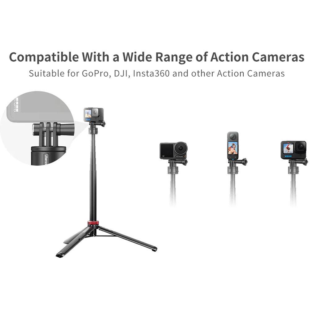 Get the steadiest shots with your action camera by mounting it on the Go-Quick II Extendable Tripod from Ulanzi. Compatible with a wide range of action cams, including most GoPro, DJI, and Insta360 models, the lightweight tripod is versatile, portable, and offers six stages of extension. It extends to 55" and retracts to 11.5" for easy transport and storage. It has a secondary reinforced locking pin for added security while in use, and the strong magnetic suction connects quickly without needing screws.