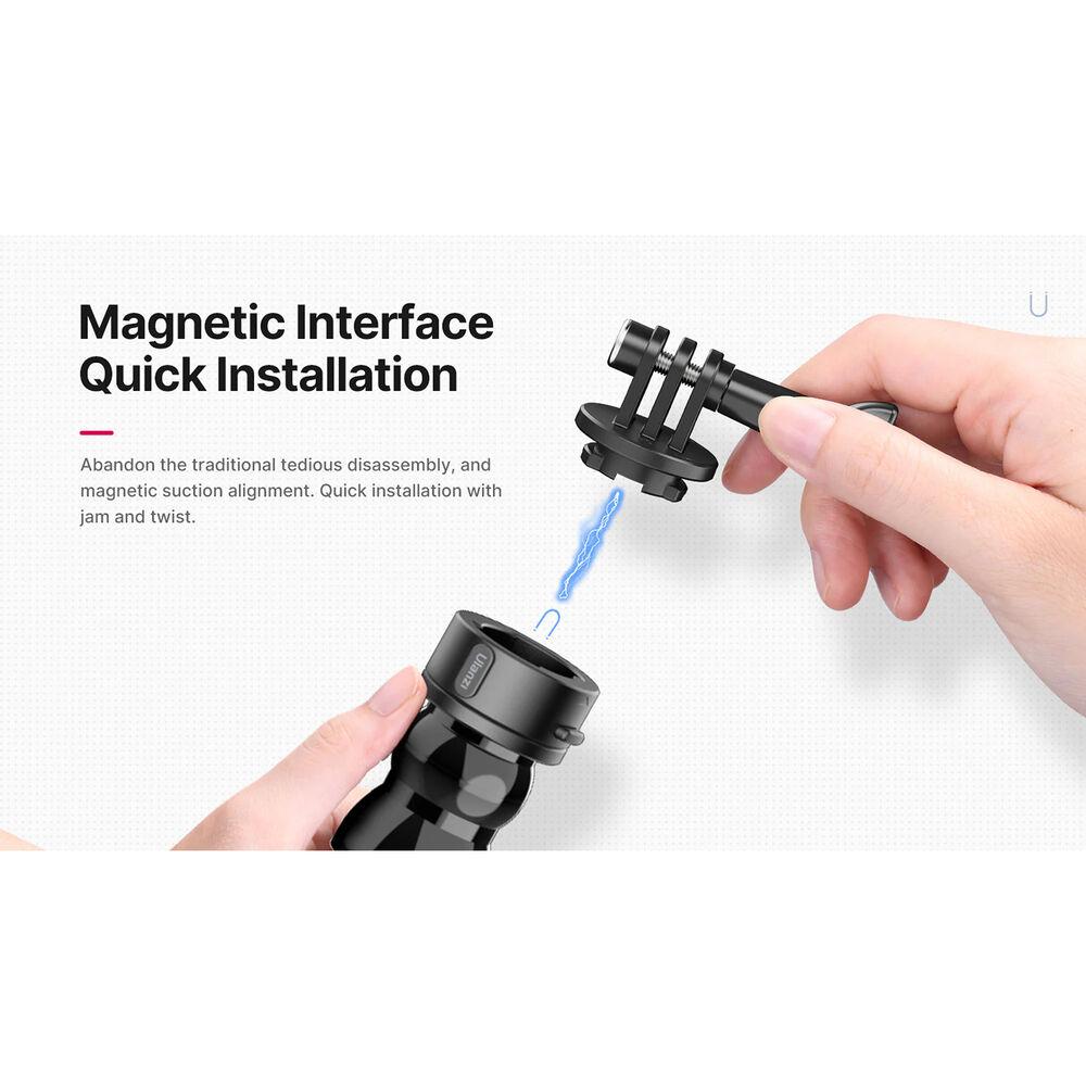 A 3-prong action camera mount on the top allows a standard action camera such as a GoPro, DJI Action, or Insta360 camera to quickly mount on the top.