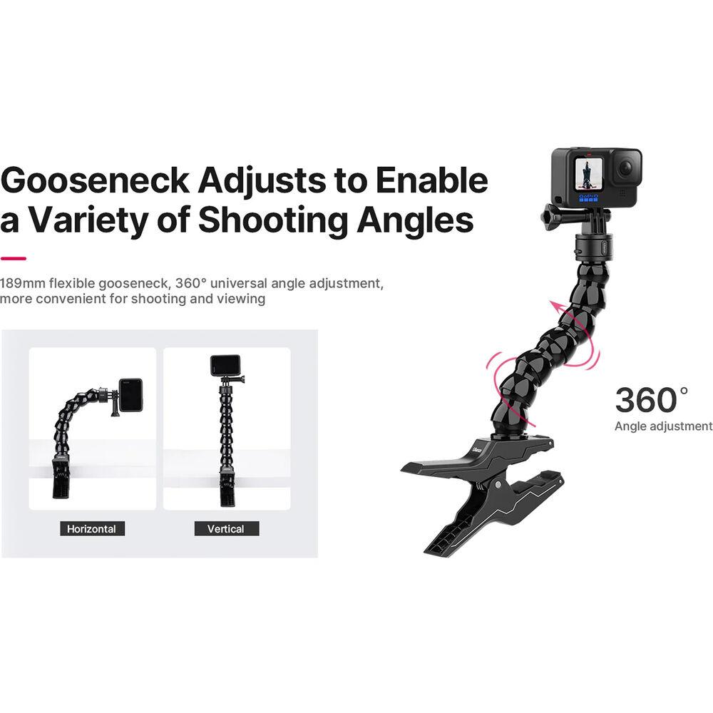 Clamp your action camera on a surface with the Go-Quick II Gooseneck Stand with Desk Clamp from Ulanzi. Use your compact action camera as a webcam or for an interview by utilizing the clamp that mounts onto a desk or surface from 0.2 to 2" thick. The adjustable gooseneck arm bends in all directions to place your camera in the correct position, and it measures 7.4" in length.