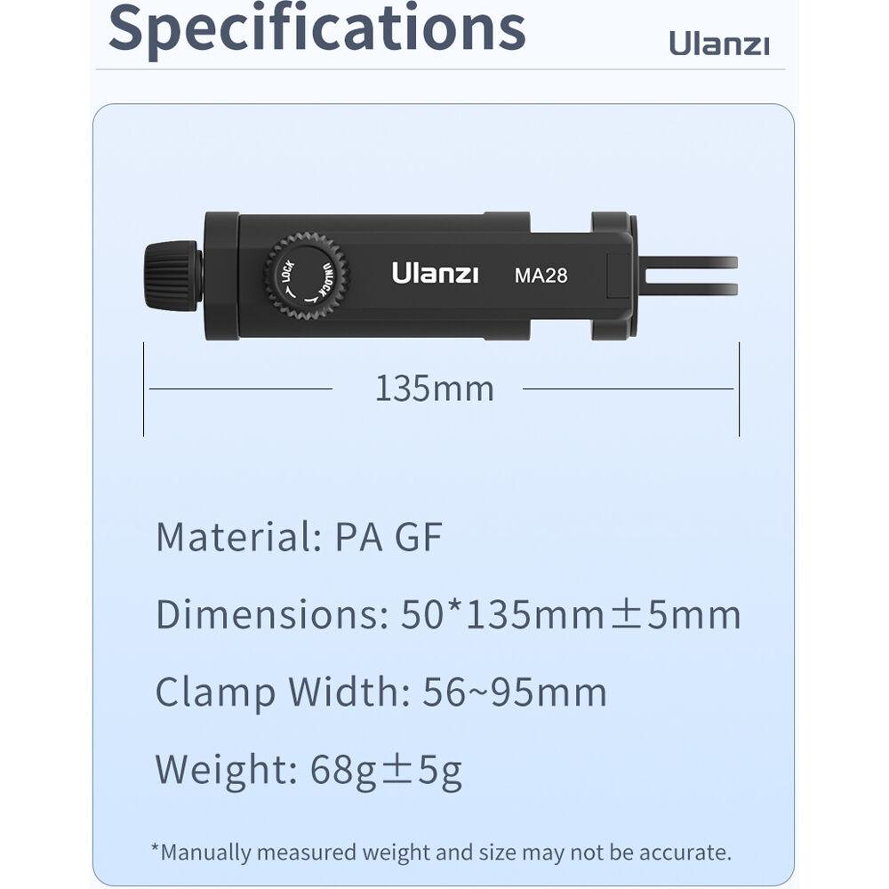 This GoPro Mount Phone Clamp from Ulanzi can securely clamp any smartphone from 2.2 to 3.7" wide and mount it to a GoPro-type action cam mount. The clamp's jaws have a locking knob and feature silicon pads to protect the phone's finish while holding it firmly in place. The clamp rotates 360° for easy positioning and easily mounts to tripods, selfie sticks, or any other device with a standard action cam mount.