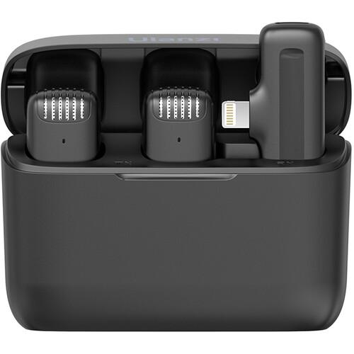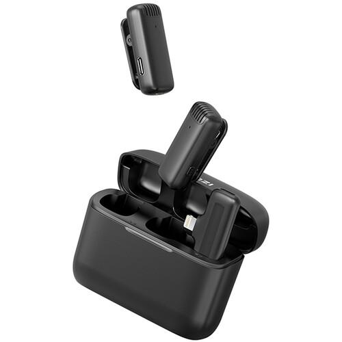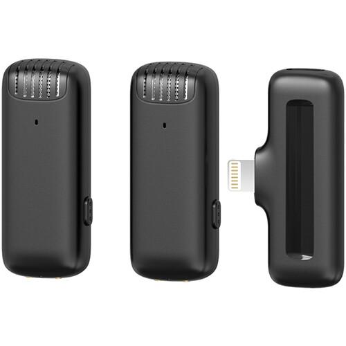 Record two-person vlogs or interviews with your compatible iOS device using the Ulanzi J12 2-Person Wireless Microphone System. The system includes two clip-on transmitters with built-in microphones and a dual-channel plug-in Lightning receiver, which inserts into your compatible iOS device. Integrated de-noise filters out noise for high-fidelity sound.
