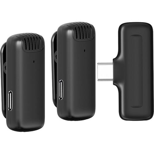 Record two-person vlogs or interviews with your compatible Android device using the Ulanzi J12 2-Person Wireless Microphone System. The system includes two clip-on transmitters with built-in microphones and a dual-channel plug-in USB-C receiver, which inserts into your compatible Android device. Integrated de-noise filters out noise for high-fidelity sound.