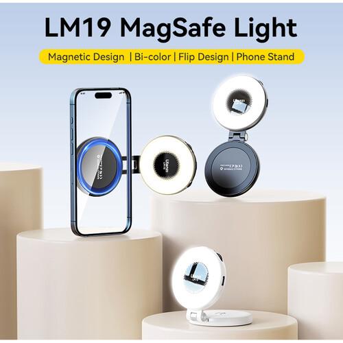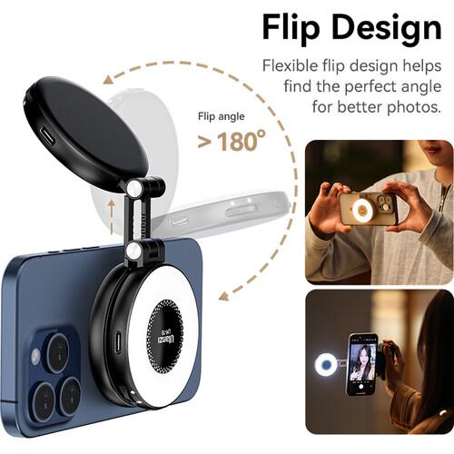 Enhance the lighting in your videos and selfies using the white LM19 MagSafe LED Selfie Ring Light from Ulanzi. It attaches to compatible devices using a MagSafe mount or the included magnetic ring sticker and may be flipped for use with both front and rear cameras. It features an adjustable color temperature of 2800 to 8500K, plus adjustable brightness from 10 to 100% with stepless dimming. With a beam angle of 120°, this light will improve photos and videos taken in low light, or add fill light to content captured under more normal conditions. Its 400mAh battery lasts for around 1.5 hours at full brightness or 8 hours at minimum brightness and can be recharged in 90 minutes using an integrated USB-C port.