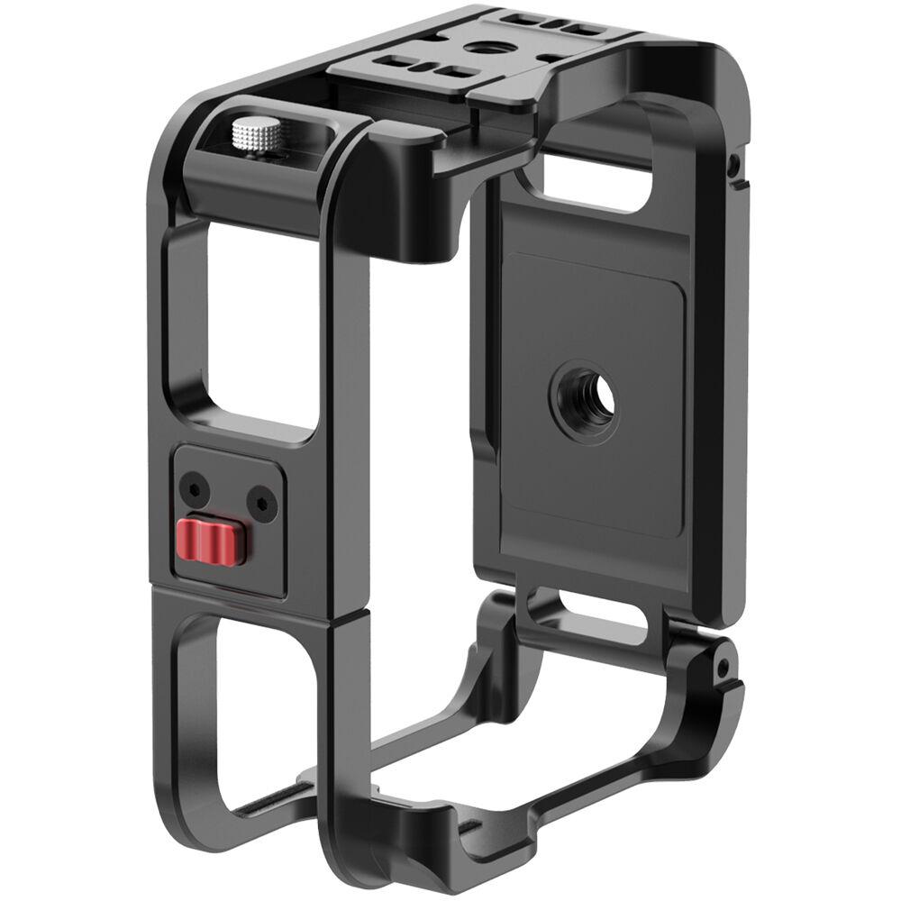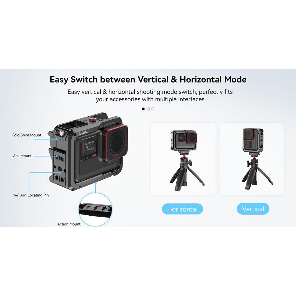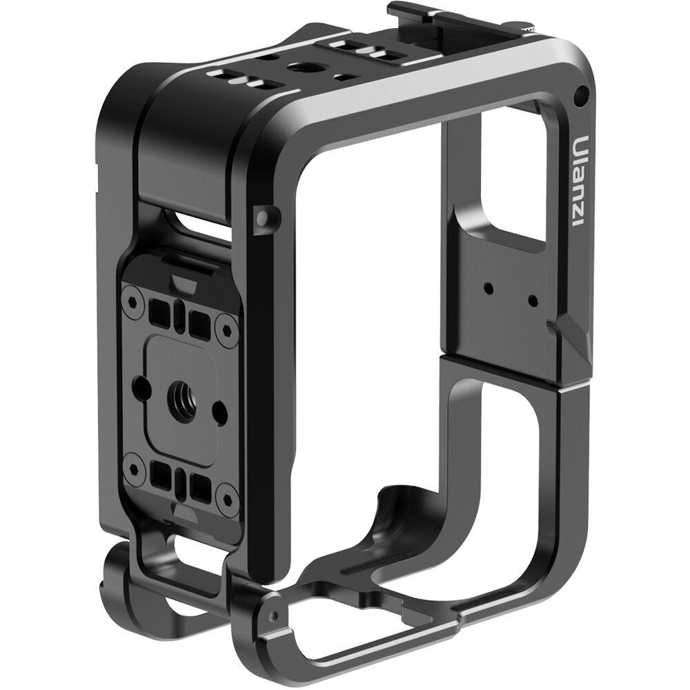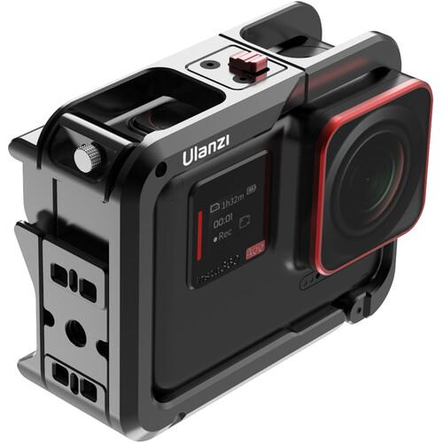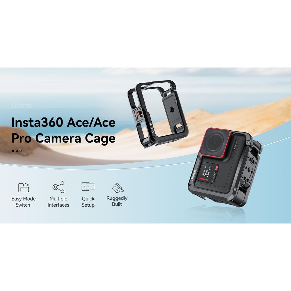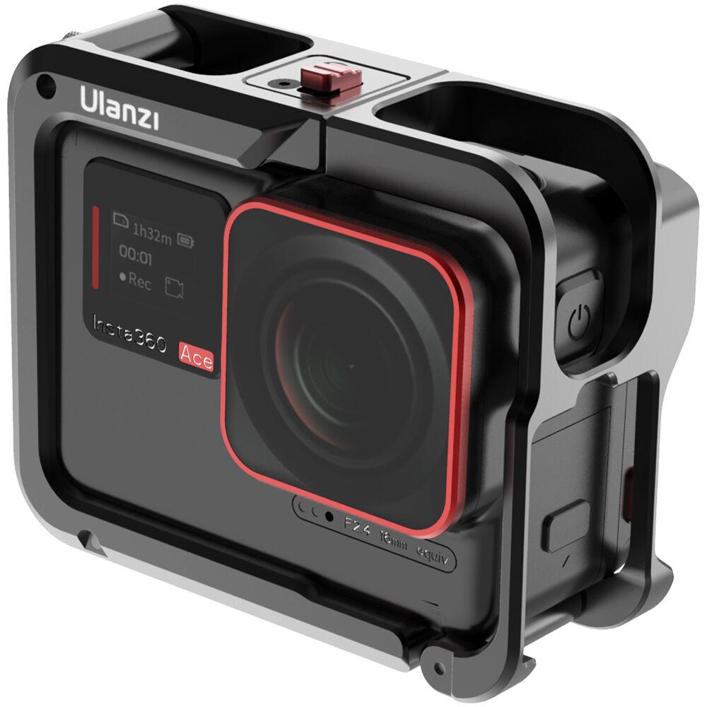 Add multiple accessory mounts to your Insta360 Ace or Ace Pro with this Metal Cage from Ulanzi. The formfitting aluminum design protects your camera while adding multiple mounting options and leaving its controls accessible and viewable. Mount accessories like a microphone or a small LED light using the cage's versatile mounts. The cage installs easily using a slide-in design and features a cold shoe, Ace and action mounts, plus a 1/4"-20 locating pin to expand your possibilities. You can mount it on a tripod, monopod, or selfie stick. Users get full access to the camera's controls and battery slot, which allows charging during use. Besides horizontal orientation, the cage can be mounted on the side for shooting in vertical mode. Inner pads protect and secure the camera at all times.