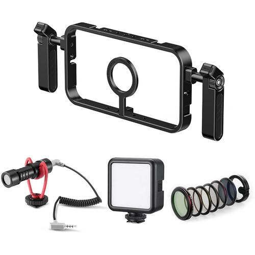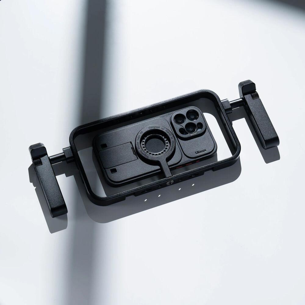 Designed for smartphones and phone cases MagSafe compatibility, such as the iPhone 12 to 15 series, the MG-001 Magnetic Phone Cage from Ulanzi is well suited for professional videography, live streaming, vlogging, and more. An included magnetic stand secures to the cage using an included 1/4"-20 screw and holds your phone in place, while two included grips provide comfort and stability while shooting. The grips feature a detachable design that allows users to quickly switch between horizontal and vertical orientations and may be positioned in any of the cage's eight locator holes. Also featured are five 1/4"-20 threaded holes and six cold shoe mounts for lights, microphones, and other accessories. Built using aluminum alloy and silicone, this cage is lightweight, yet durable.