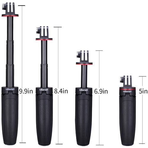 This Mini Extension Pole Tripod for GoPro Action Camera from Ulanzi features a 3-prong mount for GoPro or other action cameras. This take anywhere extension pole fits in your pocket and extends up to 8.9" long. If features ABS construction for durability, while weighing only 2.61 ounces. The base of the pole serves as a comfortable handle and can be opened up to a tripod stand.