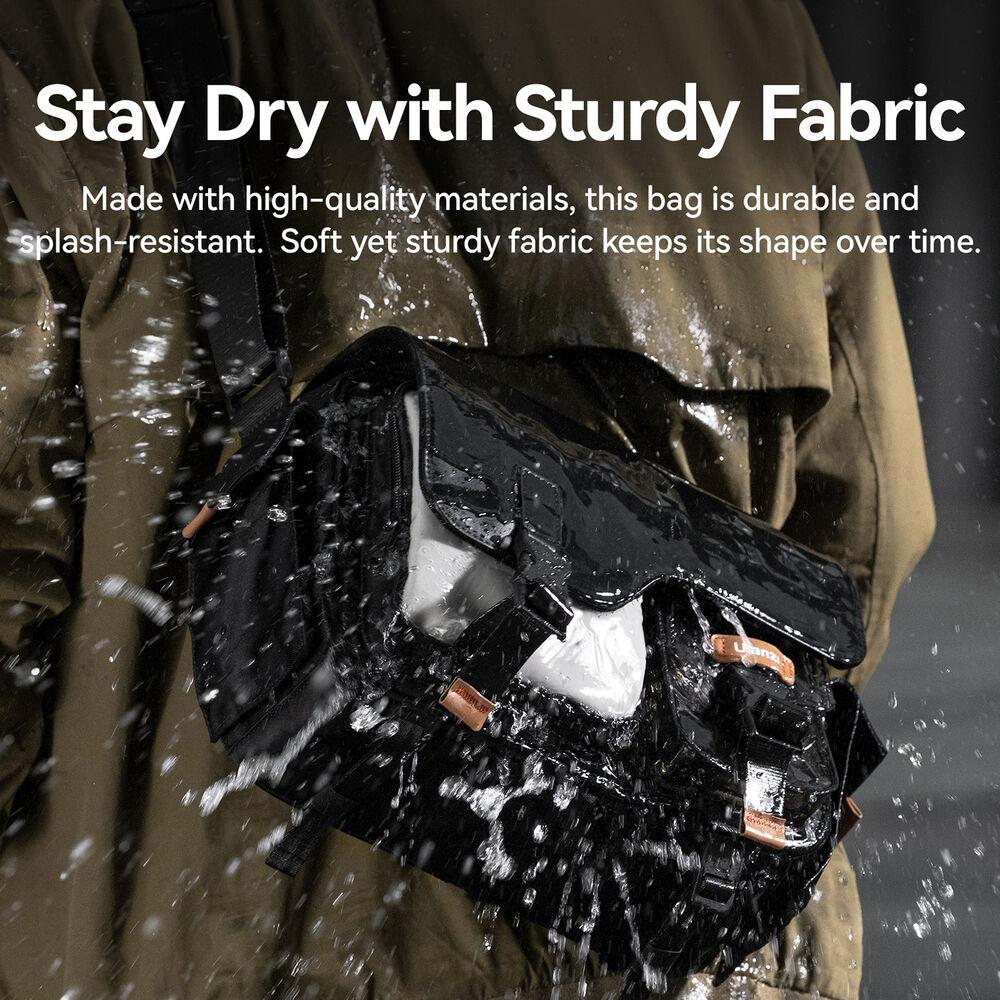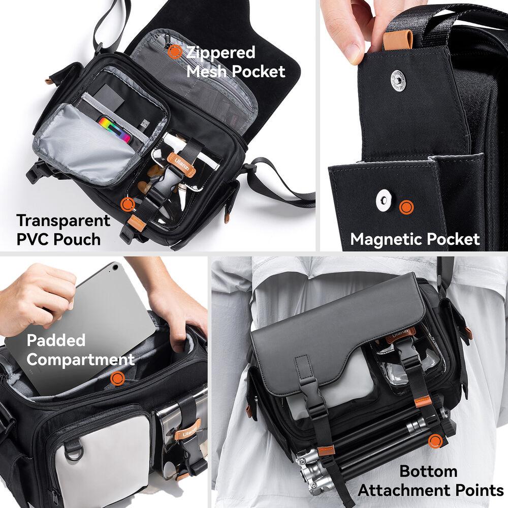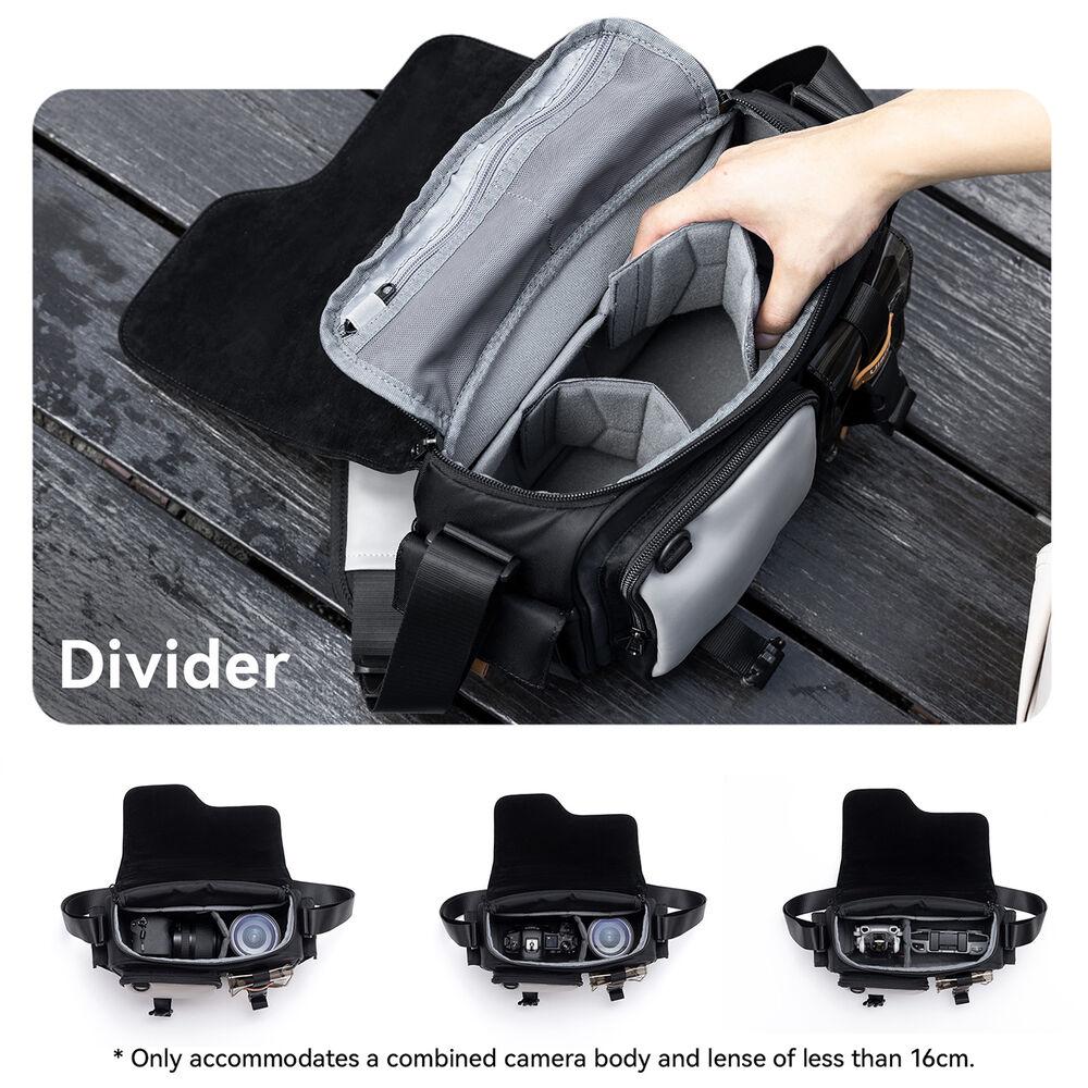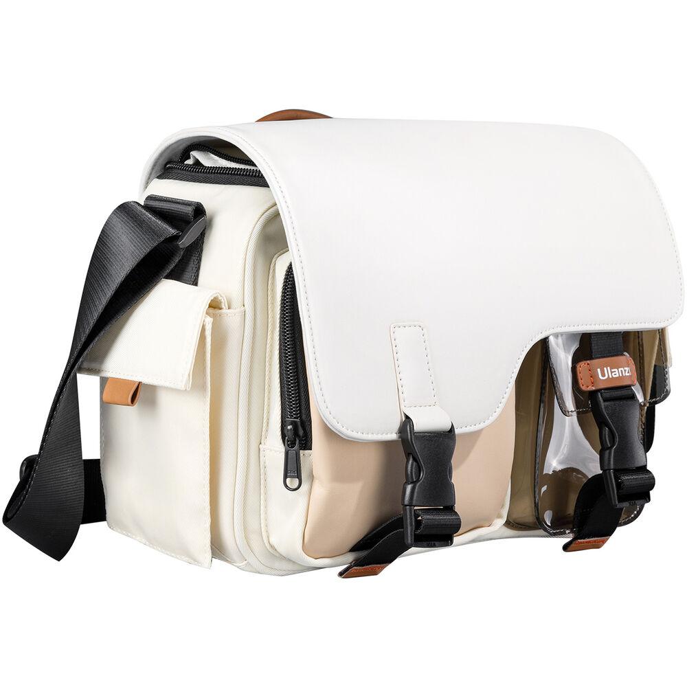 Carry your camera gear with the beige MS12 Messenger Bag from Ulanzi. This bag can comfortably carry one mirrorless camera with two lenses or one SLR camera with one lens. It can also fit a drone. This bag has a spacious main compartment and multiple zipped pockets including a transparent PVC pouch. Separate and organize your gear with the two included dividers. The clasp buckle closure makes it easy to open your bag with one hand.