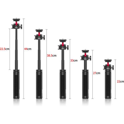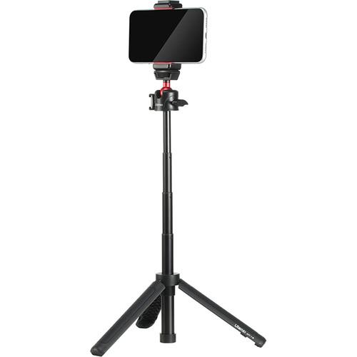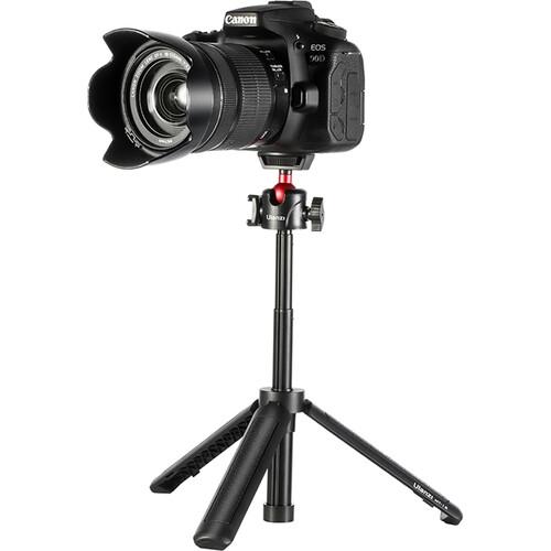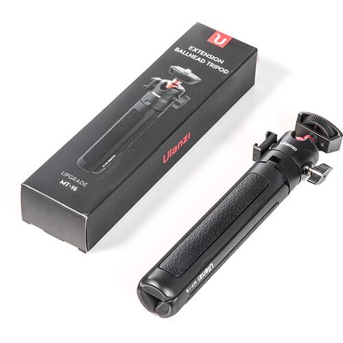 Designed for filming and vlogging, the MT-16 Extendable Tripod with Ball Head from Ulanzi serves as a 2-in-1 tripod and selfie stick that can support a maximum weight of 3.31 pounds, making it suitable for use with DSLRs, action cameras, smartphones, and other portable capture devices. Lightweight, intuitive to use, and easy to carry, the MT-16 features a cold shoe mount for use with accessories including microphones and lights. It attaches to your device of choice using a 1/4"-20 thread and its center column can be extended from 8.7 to 17.3" in length.