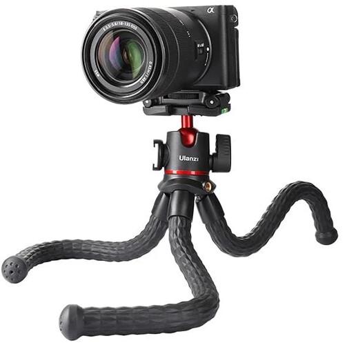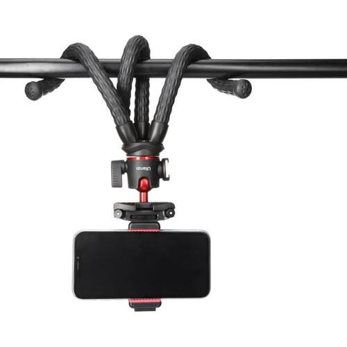 The MT-33 Octopus Tripod with Double Cold Shoe Ball Head from Ulanzi features flexible legs made of ABS plastic with a TPR thermoplastic rubber coating that provides traction to grip surfaces when wrapped around poles, branches, and other extensions. The legs are also easy to hold when using the MT-33 as a camera grip when webcasting or shooting video content. It has a load capacity of 4.4 lb and a maximum height of 11.8". The ball head has a standard 1/4"-20 mounting screw and also features a folding smartphone clamp. It features a rotating cold shoe accessory mount on the side plus a second cold shoe on the phone clamp, making it simple to create a customized camera rig with a microphone, a compact LED light, or any other compatible accessory.
