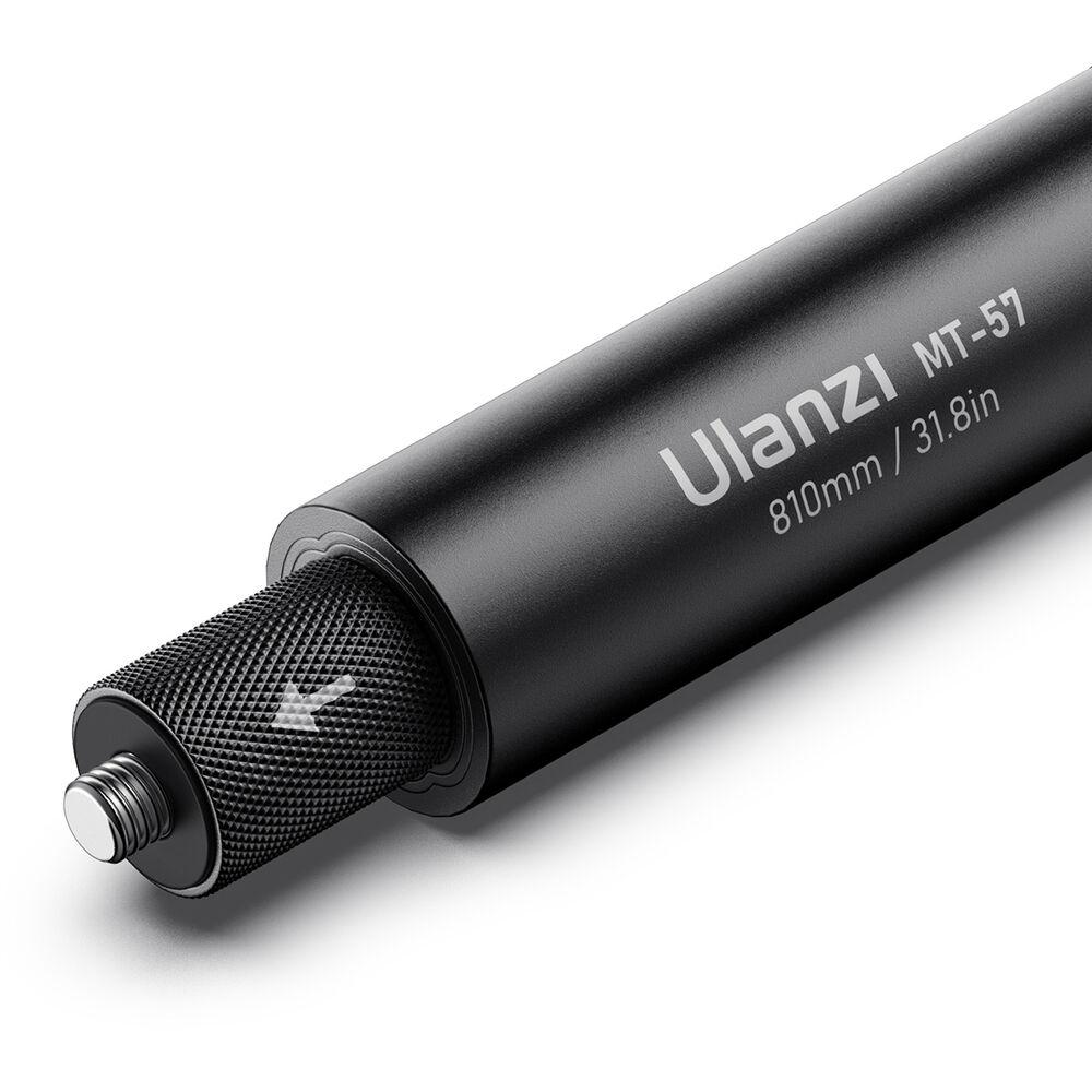 Designed to accommodate your action camera and ideal for on the go, this Ulanzi MT-57 Extendable Selfie Stick has a height extension range of 0.7 to 2.7' to capture footage on your next mountain biking or hiking excursion while also being able to slip into a backpack. The 1/4"-20 screw at the top of the pole and an overall load capacity of 2.2 lb supports action cameras from Insta360 and other brands. It's designed to remain invisible in 360° shots thanks to its slim profile. You can even mount it onto your own handlebar mount using the 1/4"-20 tripod thread at the bottom. A wrist-strap and silicone grip offer additional handheld security and comfort.