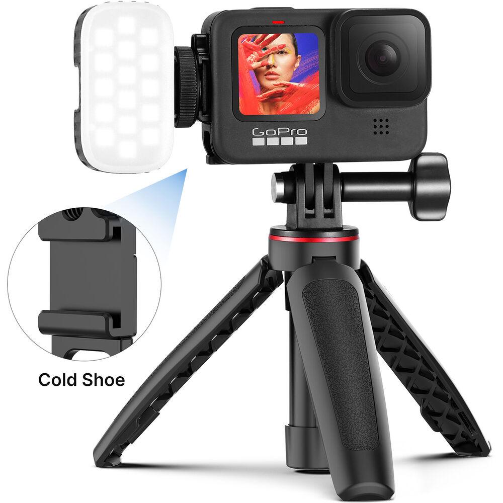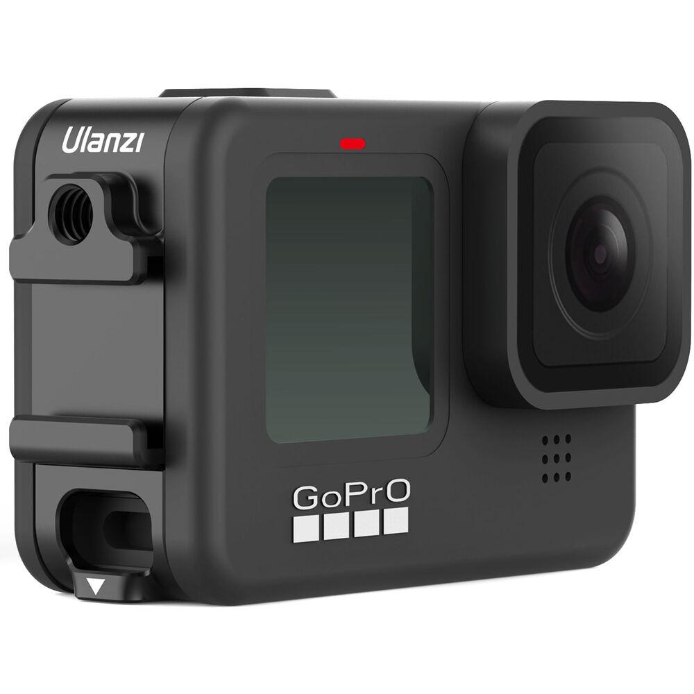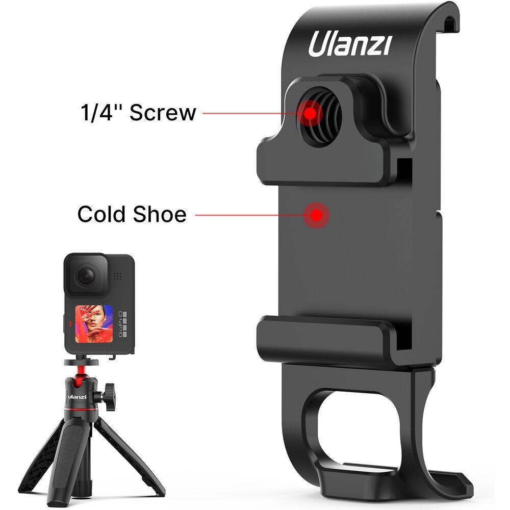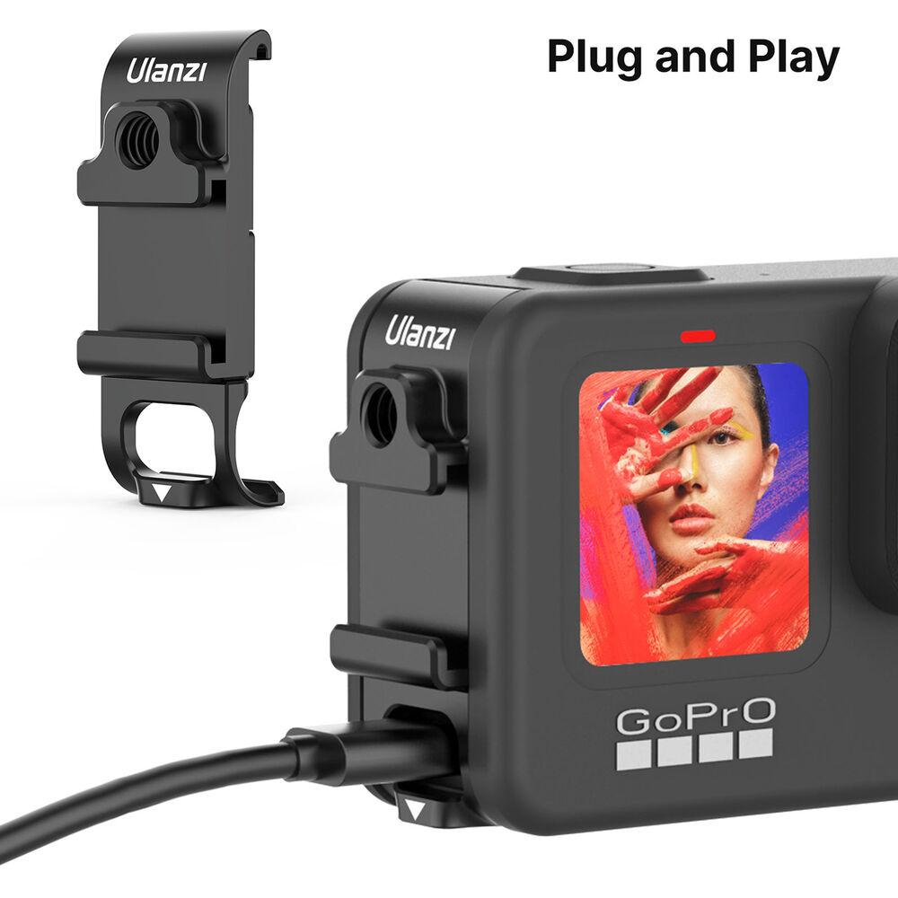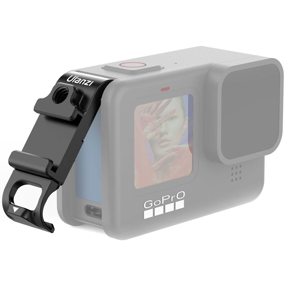 The Ulanzi Multifunctional Battery Door for GoPro HERO9 secures to the camera without any screws and provides a battery cover while offering a cutout for connecting a charging cable. It also provides a 1/4"-20 threaded hole and a shoe mount for attaching accessories to your camera. Sponge padding on the interior side of the door allows for secure attachment to the GoPro.