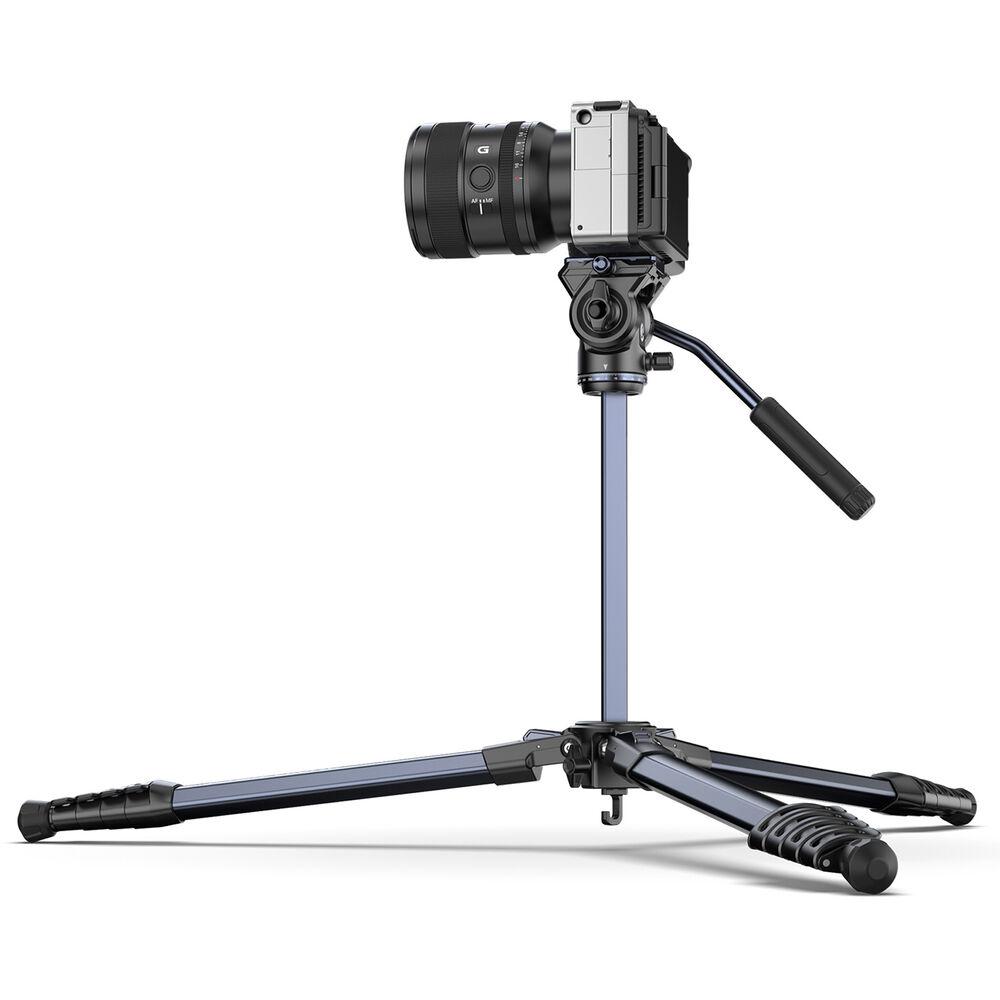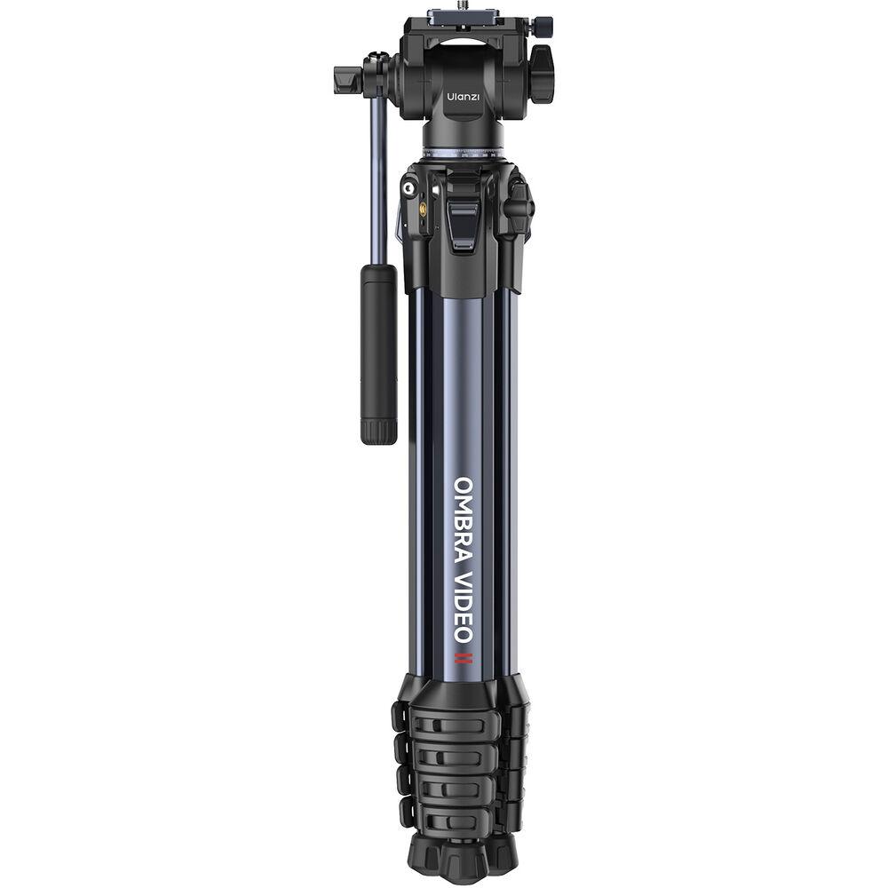 The Ombra Video II XIANG Aluminum Tripod with Fluid Head from Ulanzi is a lightweight tripod for video capture on the go. With a fluid head featuring a load capacity of 6.6 lb, 360° pan, and +90/-75° tilt, it's simple to mount your camera to the included Arca-type quick release plate and line up the perfect shot. The five-section legs have a load capacity of 22 lb, and with the center column fully extended, they bring the camera to a height of 61.8". For stability, the tripod features spiked feet and a counterweight on the center column, which can also be inverted for low angles. The tripod folds down to a small 19.3" and features both a 1/4"-20 ARRI locating hole and a phone clamp for additional accessory mounting.