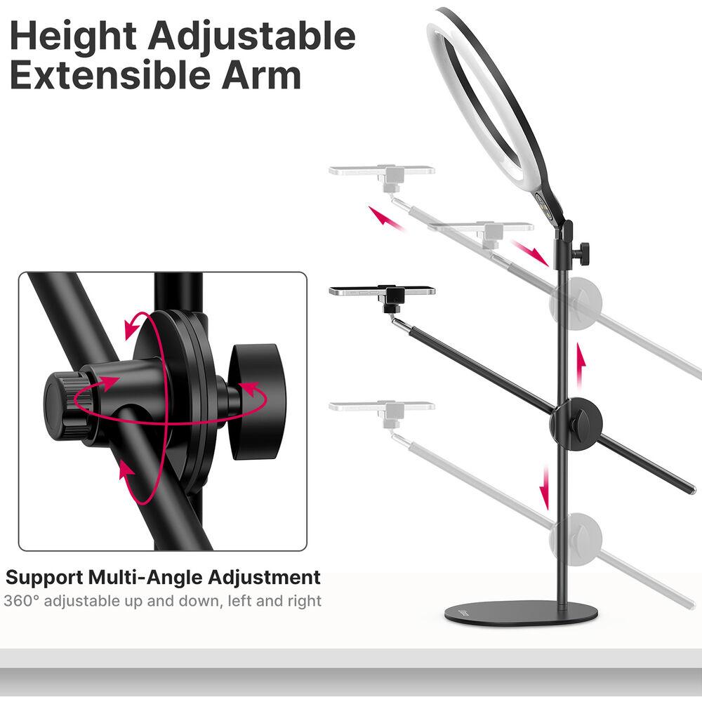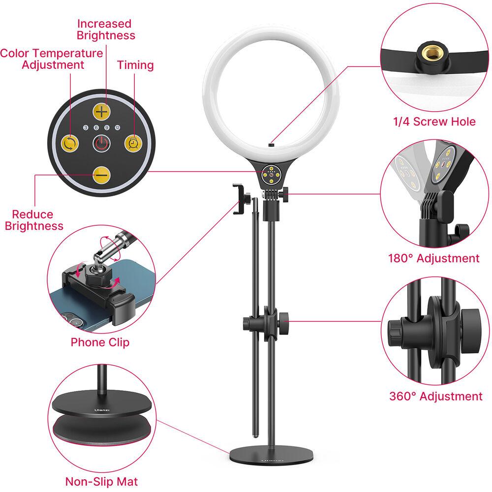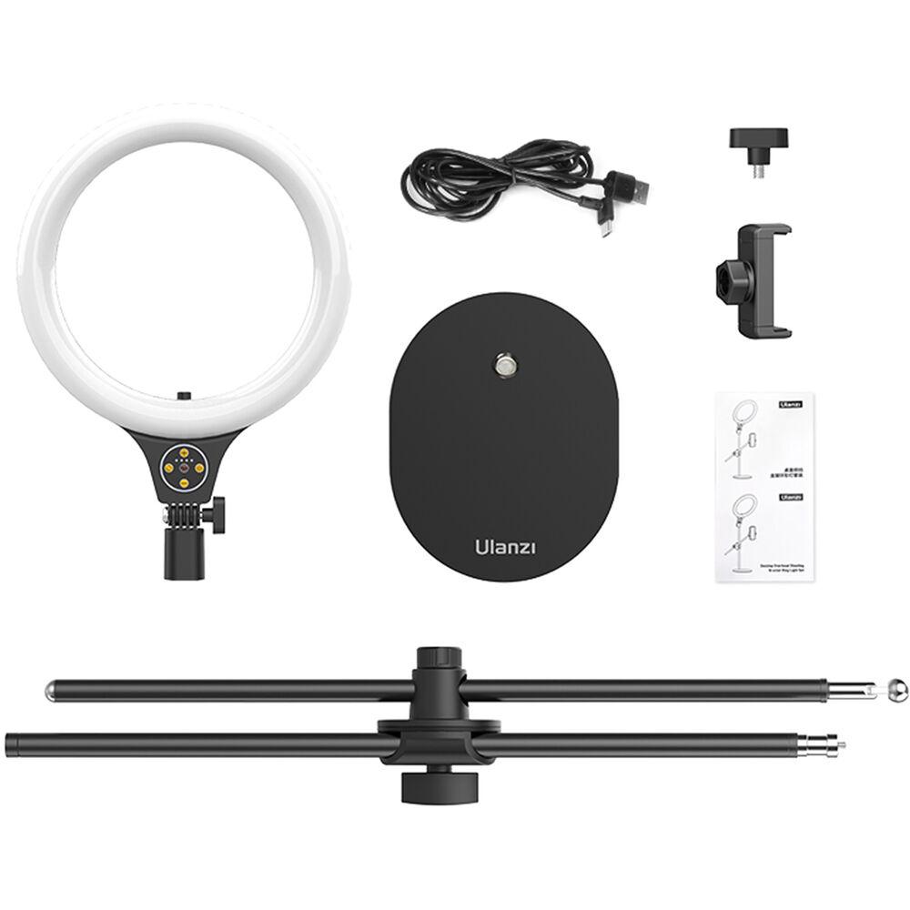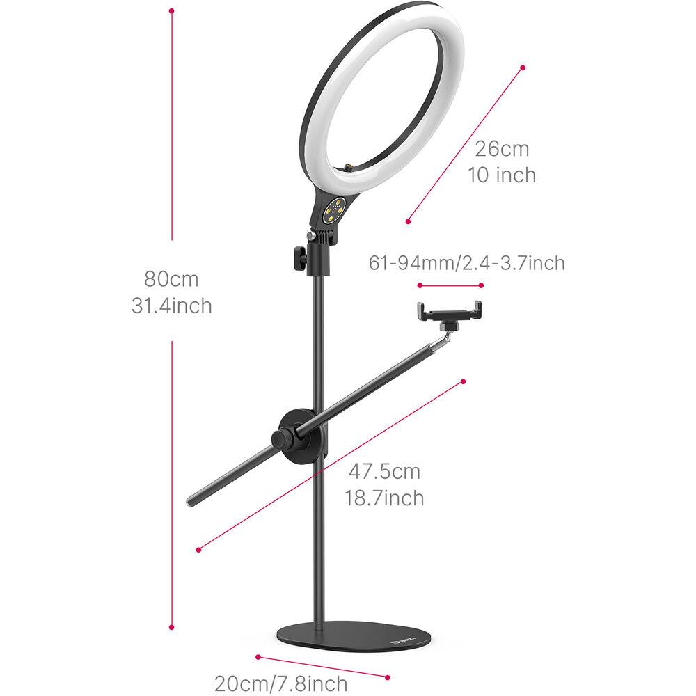 The Overhead Ring Light Set from Ulanzi allows you to light and shoot your subject from above. Ideal for dishes prepared for your food vlog, the light stands has a maximum height of approximately 32" and the ring light has a 10" diameter.