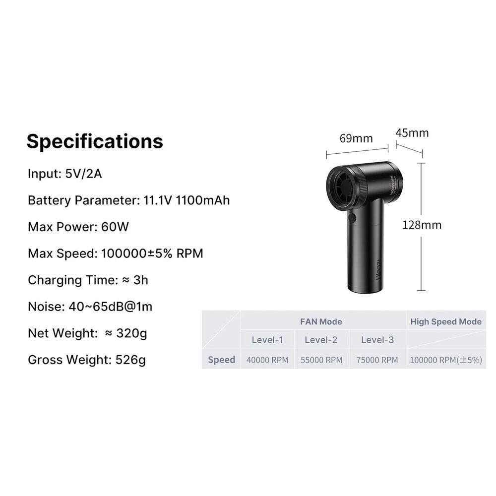 The black Powerful Electric Air Duster from Ulanzi is a helpful and convenient tool for cleaning home offices and studios, especially around sensitive equipment and technology. The 2-in-1 design allows it to be used as a vacuum or an air duster. If has four speeds and three nozzle attachments to suit your needs. Its 1100mAh battery has an LED level indicator and charges via USB-C to 100% in about three hours. It offers a 120-minute runtime, and a USB-C cable is included so you can power it right out of the box.