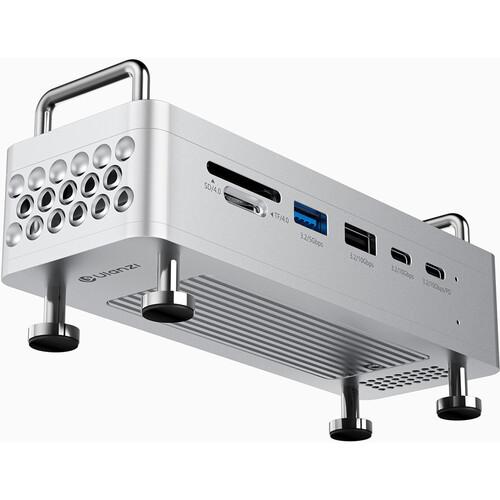 Combining external data storage with advanced port expansion, you can declutter your work space by using the QT03 Docking Station with SSD Enclosure from Ulanzi. The sleek aluminum station features a blazing fast USB4 host connection with up to 40 Gb/s of data transfer. Once connected to your laptop or desktop computer you'll get access to a variety of ports and the optional M.2 SSD stored inside. The M.2 SSD cavity can hold drives up to 8TB and the ports include two USB-C, two USB-A, HDMI 4K60, and 3.5mm audio ports, as well as an SD and microSD card slot. Everything is kept cool via the adjustable fan, aluminum bottom plate, and ventilated mesh design that optimizes airflow and heat dissipation.