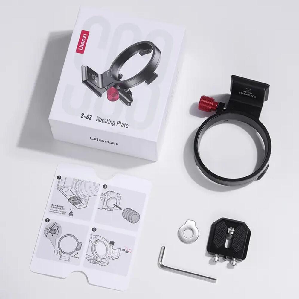 The S-63 Rotatable Horizontal-to-Vertical Mount Plate Kit from Ulzani is a versatile, rotating mounting solution for select Sony mirrorless camera bodies. It makes it possible to quickly switch between horizontal and vertical orientation without changing the center point of the lens, eliminating the need to recompose the shot. The interior diameter of the rotating ring is 2.5" providing ample room for a large variety of both Sony and other brand lenses.
