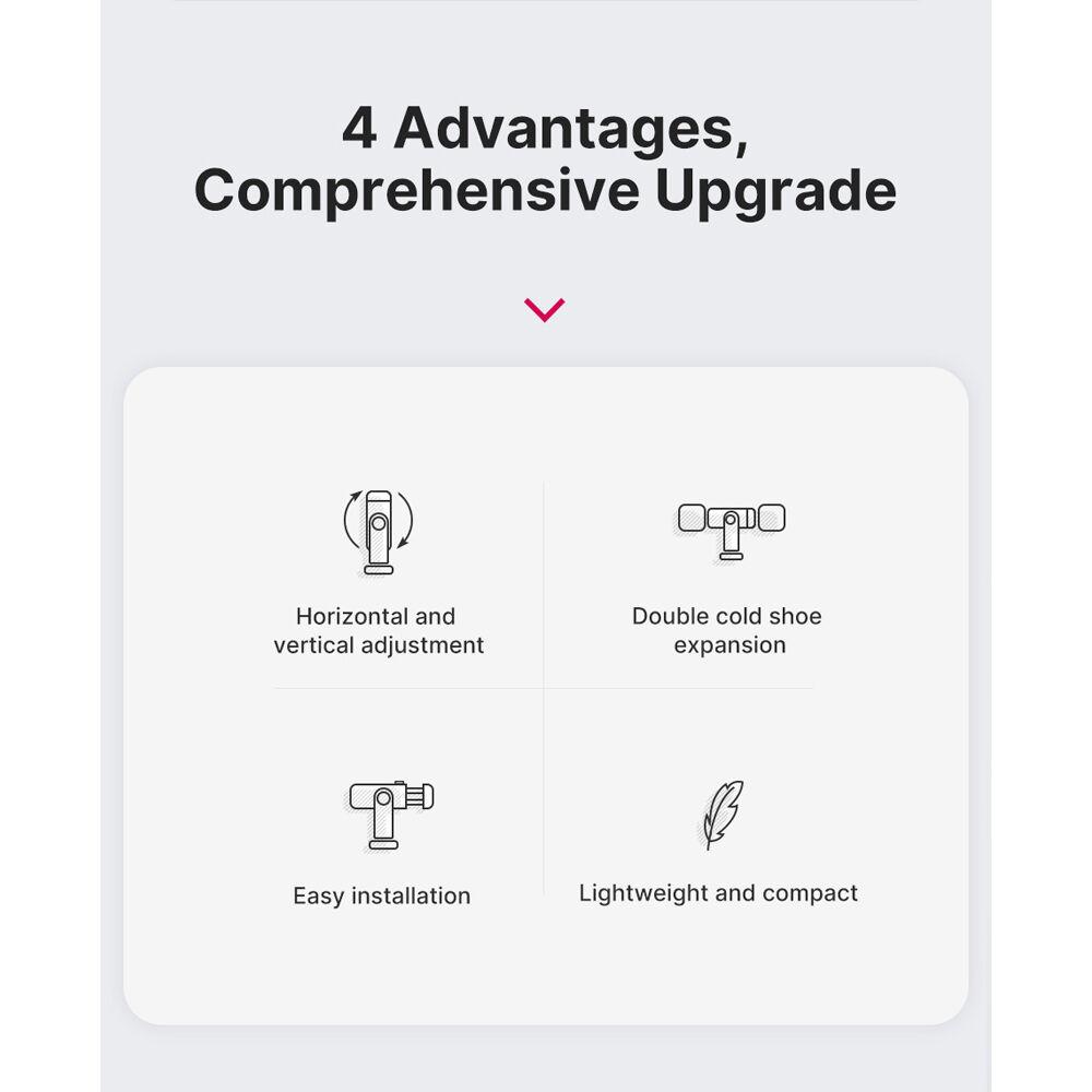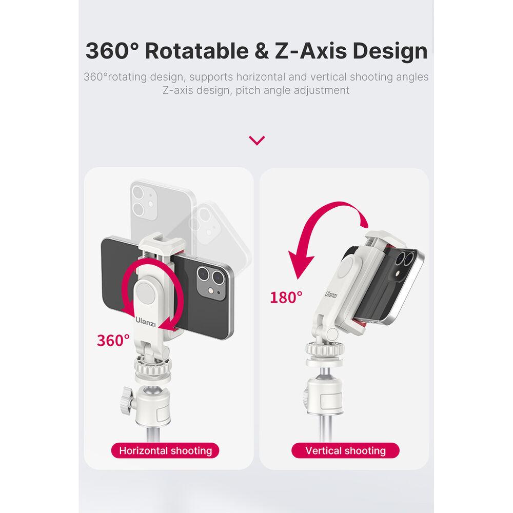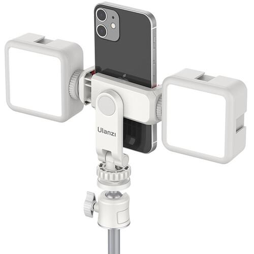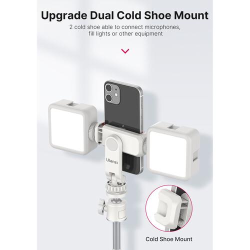 The ST-06S Smartphone Mount from Ulanzi fits smartphones 2.4 to 3.5" wide. It may be used handheld, secured to a tripod using its female 1/4"-20 thread, or secured to the hot shoe of a DSLR or other compatible camera using its cold shoe adapter. The ST-06S also features dual cold shoe mounts for lights or microphones, while a 360° rotation and 180° tilt let you frame your shots with more freedom. Once everything is set, a locking design helps keep things in place.