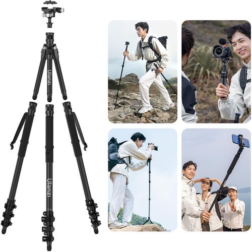 Explore a variety of support options with the TT35 Hiking Pole Tripod with Ball Head Kit from Ulanzi. The TT35 modular tripod system includes three monopods and a mini tripod that can all be used individually or together to form a robust and taller support. The four-section tripod provides a working height range from 5.7 to 57.4" to cover your different needs. You can use it as a standard tripod, hiking pole, monopod, or even as a selfie stick. All with a quick release design that won't slow you down. The mini tripod base can be assembled and added to the tripod system or used separately. The ball head provides a load capacity of 11 lb in any configuration. Ulanzi conveniently adds a carry bag to facilitate storage and transportation.