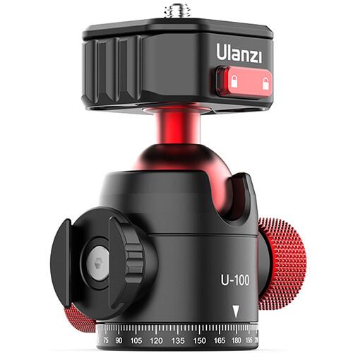 The U-100 Claw Quick Release Ball Head from Ulanzi is a compact ball head with an integrated rotating accessory shoe that can be used for adding a microphone, LED light, or other accessory for vlog- or webcam-based recording. The integrated Ulanzi Claw quick release system is a compact but versatile quick release plate and receiver set with a with a dual safety lock switch system to prevent accidental release. The plate features a 1/4"-20 camera mounting screw and a rubberized base for camera traction and to resist marring the camera finish.