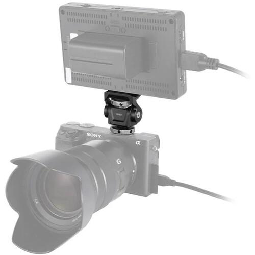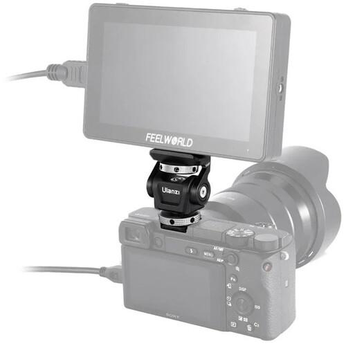 Attach a monitor with a 1/4"-20 mounting thread on your camera rig using the U-150 Swivel and Tilt Ball Head Monitor Mount from Ulanzi. This onboard monitor mount attaches to your camera rig using a cold shoe mount and to your monitor using a 1/4"-20 screw with a retractable anti-twist pin. It swivels 360°, tilts 180°, and locks securely in place thanks to a rubber gasket and knurled thumbscrews.