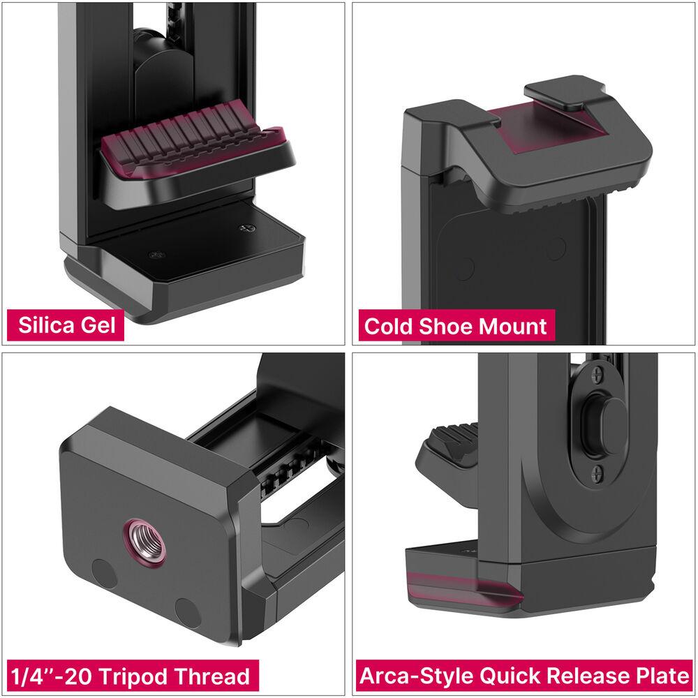 When out filming, give your mobile devices a stable platform with the Ulanzi U-Pad II Smartphone & Tablet Tripod Mount and a tripod (not included). The combination of the push-button adjustable lower clamp and the spring-loaded top clamp lets this mount hold smartphones or tablets from 2.6 to 10.2" wide. Use it for basic mobile photography, vlogging, or livestreams. You can use it with a wide variety of tripods as the base features an Arca-style mount and 1/4" threaded receiver connection.