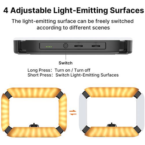 A 1/4"-20 mount enables you to attach your camera or cell phone within the light, and a 1/4"-20 bottom mount can be used to attach the light to a tripod or another support. The U200 light features an integrated 8000mAh battery that lasts up to 2.5 hours and is charged via the light's USB Type-C port.