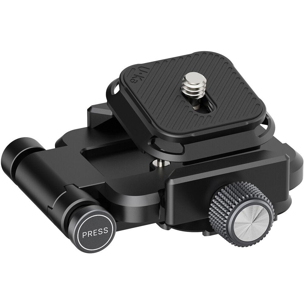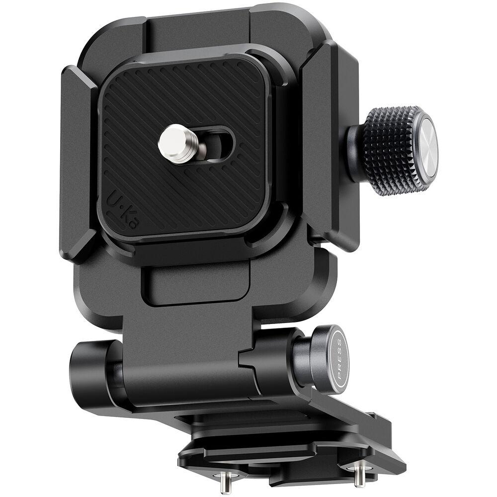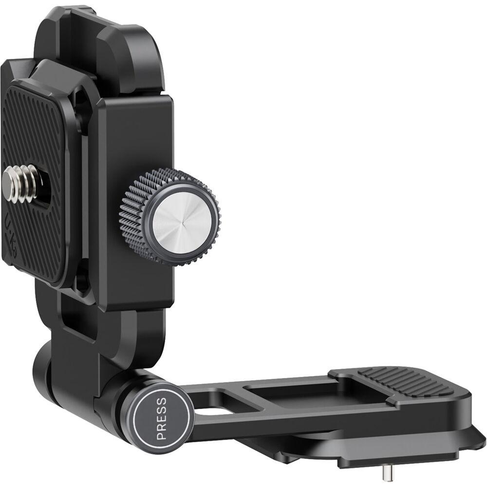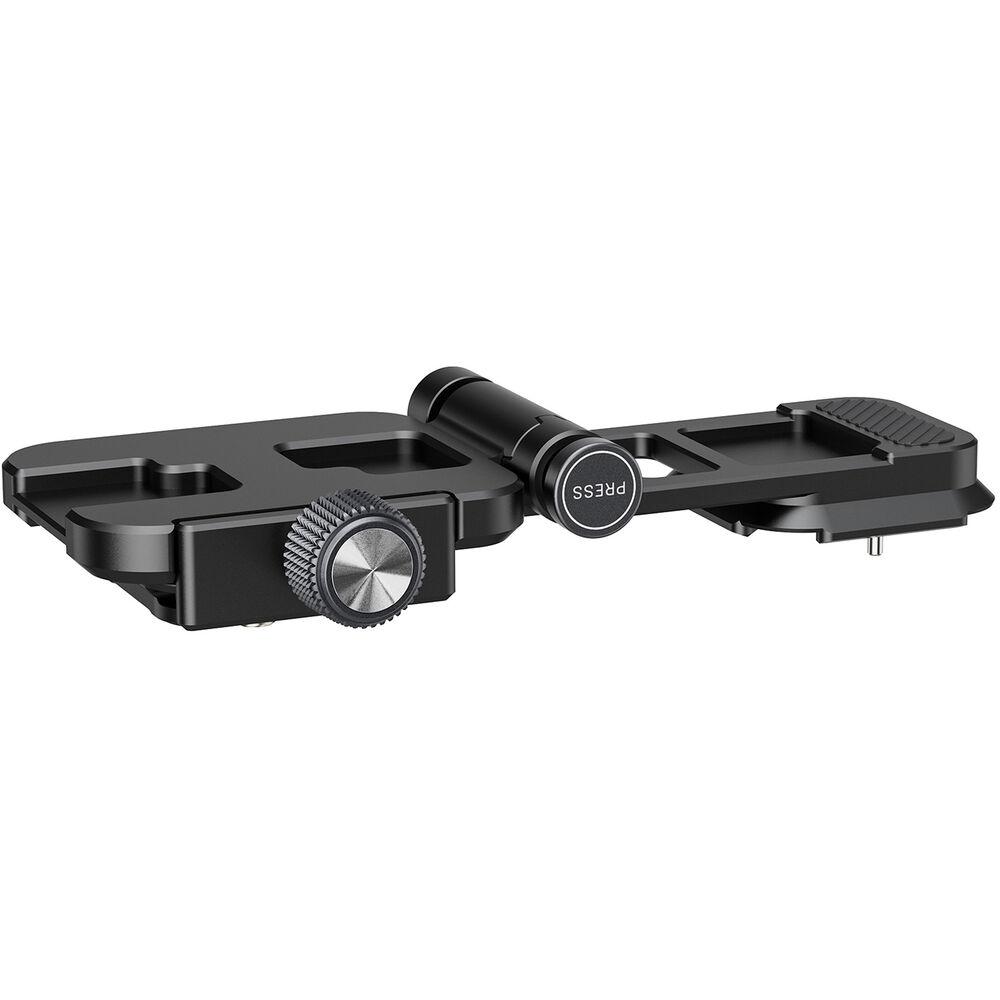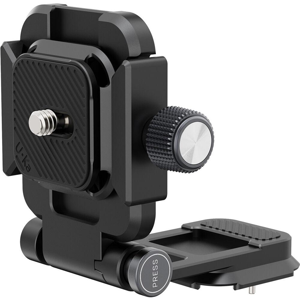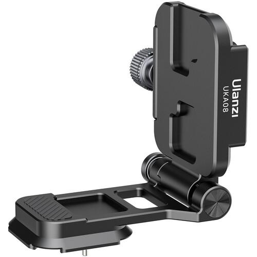 This black UKA08 Foldable L-Bracket and Baseplate from Ulanzi provides the ability to switch from horizontal to 90° vertical shooting orientation in a snap. A convenient, single button allows you to unlock the baseplate for easy swivel and locking. With a load capacity of 8.8 lb, this piece is well suited for smaller cameras. The compact baseplate has a quick release, four-way Arca-type plate with a 1/4"-20 top mounting screw, held in place by an intuitive locking knob. Constructed from aluminum alloy and stainless steel, the foldable L-bracket and baseplate is durable while remaining lightweight.