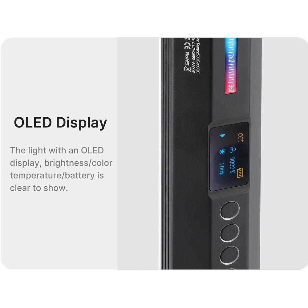 Both CCT color temperature and intensity settings are continuously adjustable, from 2500 to 9000K and 0 to 100%, respectively. The light's RGB mode allows you access to a 360° color wheel, while the HSI control protocol can be used to precisely attune the light to millions of color possibilities. This wide range helps the VL110 freely adapt to a huge range of atmospheres and environments. When using the VL110 to shoot short films or music videos, realism can be lent to the scene and in-camera effects can be reinforced thanks to the array of special effects presets made available by Ulanzi; effects include various vehicle simulations, party-like programs, and color chases. All of these settings are clearly accessible thanks to a built-in OLED display.