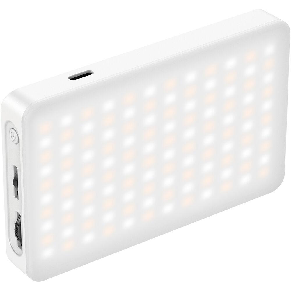 The white Ulanzi VL120 RGB LED Video Light is a compact, versatile LED unit featuring RGB color selection, a variable 2500 to 9000K color temperature, 0 to 100% dimming, and 20 lighting effects. Compact and light enough to slip into your pocket, the VL120's integrated 3100mAh battery charges fully in about 2.5 hours using the included USB-C cable. This LED light has an OLED display and includes one 1/4"-20 mounting thread and a cold shoe adapter for mounting on your camera or rig.