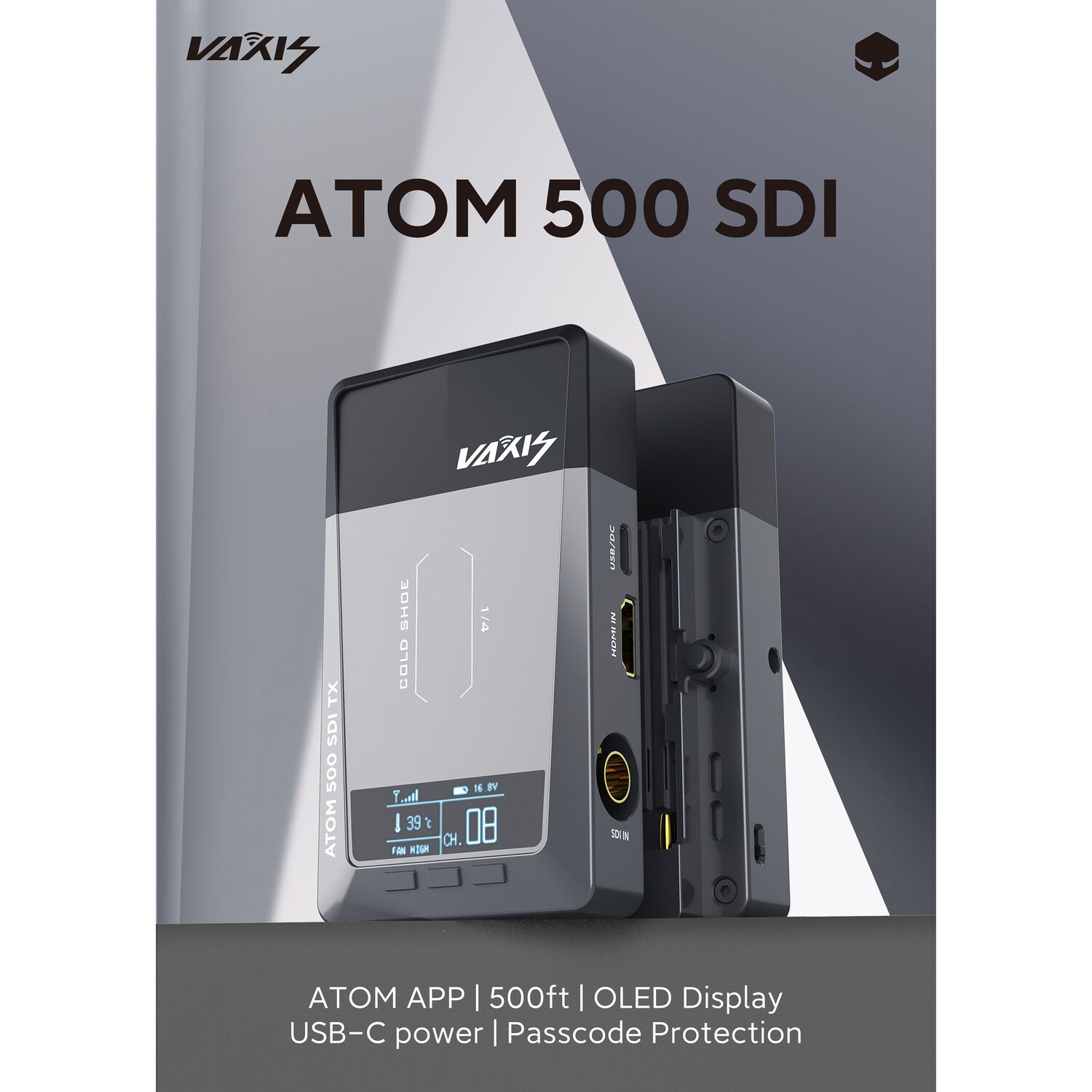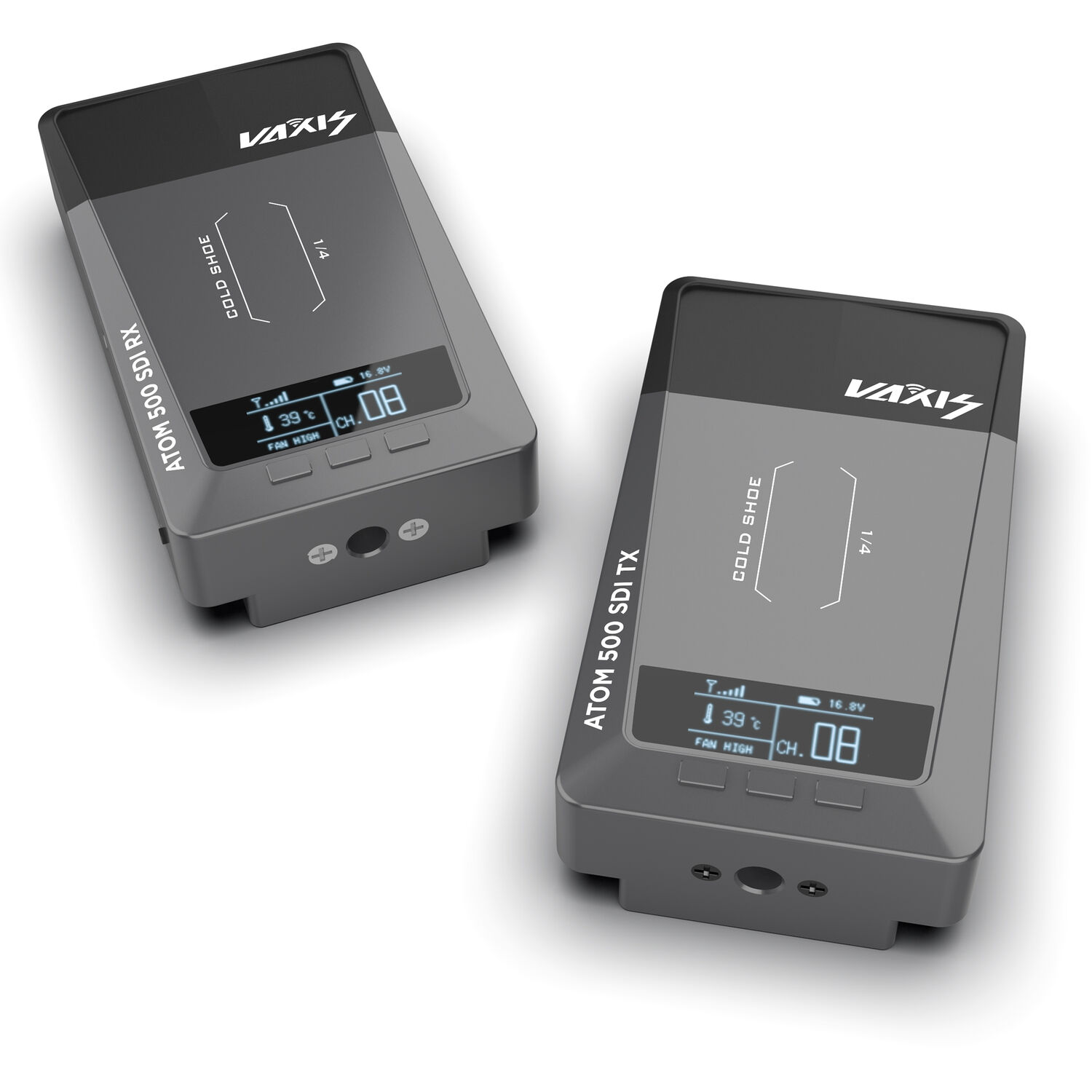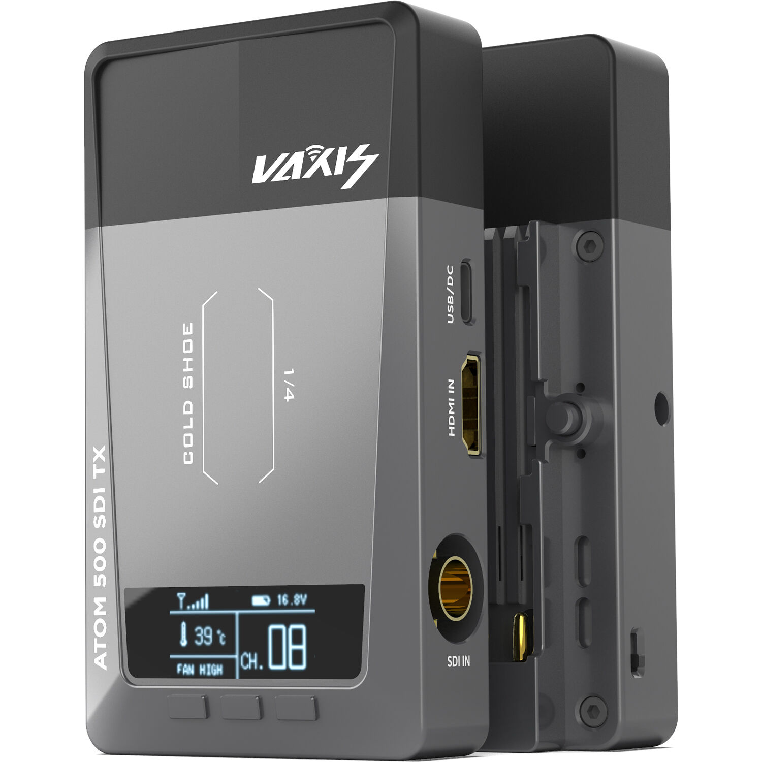Sporting both 3G-SDI and HDMI connections, the ATOM 500 SDI Wireless Video Transmitter and Receiver Kit from Vaxis enables transmitting visually lossless, H.265 video signals to the Vaxis receiver with less than 80 ms latency. The transmitter sends a powerful line-of-sight signal up to 500' and it can also multicast via Wi-Fi to up to three mobile devices for monitoring.