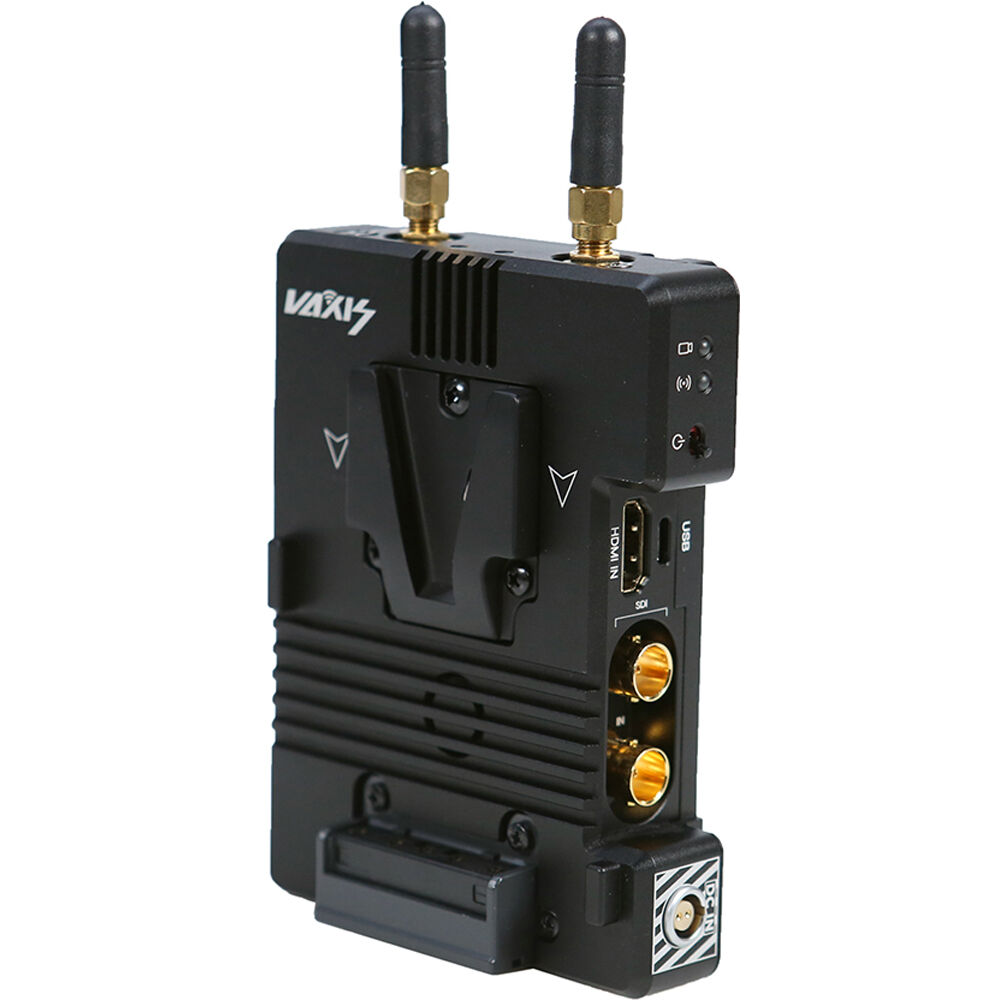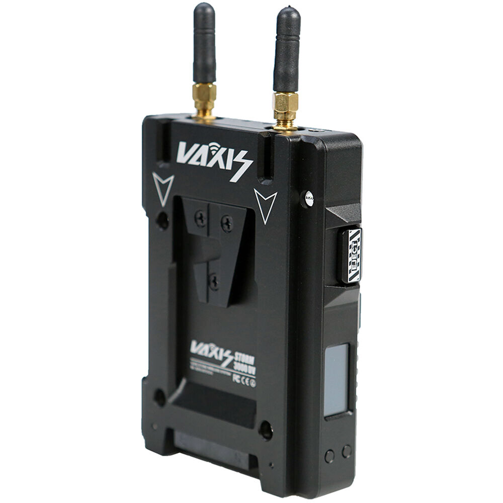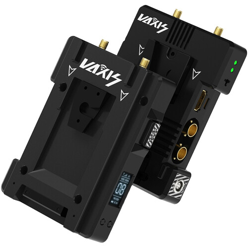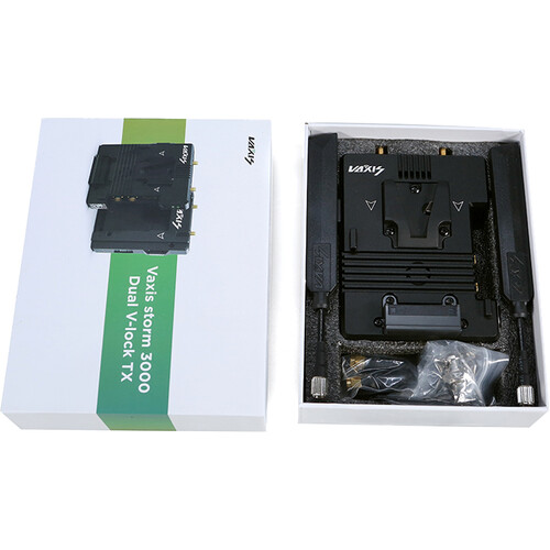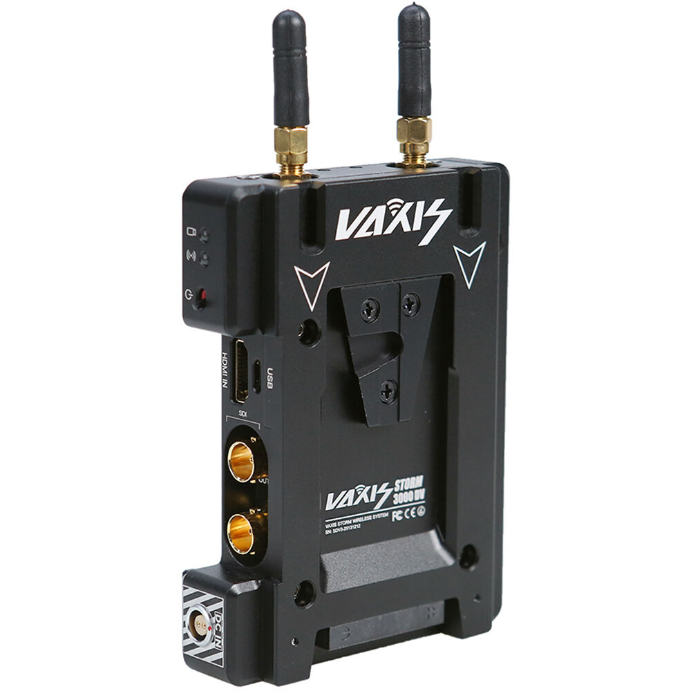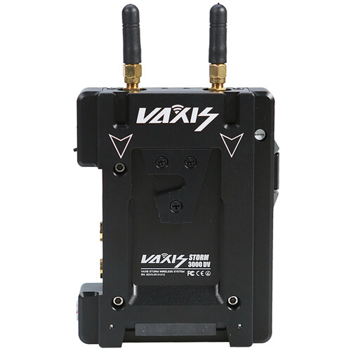 Use the Storm 3000' DV Wireless Video Transmitter from Vaxis to transmit visually lossless, uncompressed video signals to any Vaxis Storm receiver. This zero-latency unit features a dual V-mount plate which provides pass-through power to the transmitter and the camera simultaneously. The transmitter features one HDMI input, one SDI input and one SDI loop output, and it supports input up to 4K and up to 1080p60 video transmissions. This unit also supports cross conversion from HDMI input to SDI loop output.