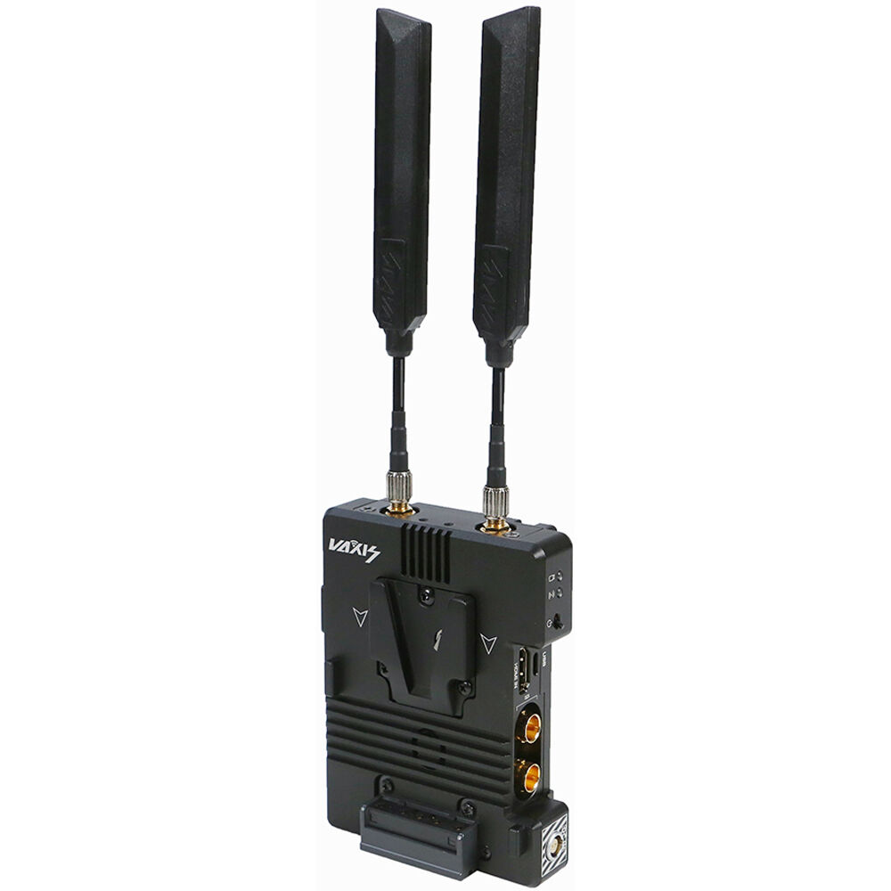 The included short antennas provide connectivity for short distances of a few hundred feet, while the larger blade antennas transmit a powerful line-of-sight signal up to 3000'. This unit also supports the transmission of timecode, metadata, and timecode trigger information.
